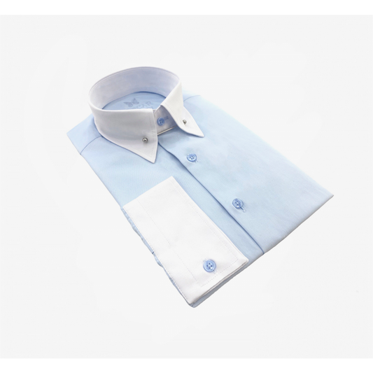 Weißes Hemd mit englischem Kragen und 619 Metallknöpfen