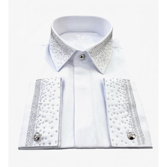 Weißes Diamant-Strass-Zeremonienhemd 610