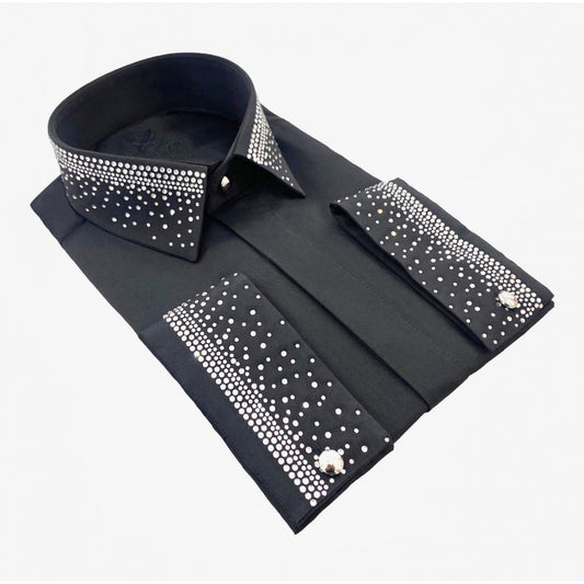 Schwarzes Diamant-Strass-Zeremonienhemd 610