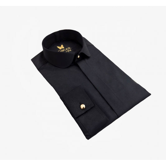 Schwarzes Hemd mit geradem Kragen BHL 602