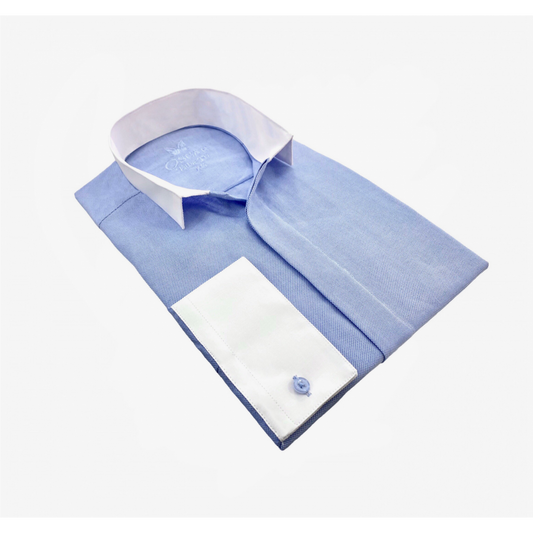 Zweifarbiges Oxford-Blauhemd mit weißem Reverskragen 1950
