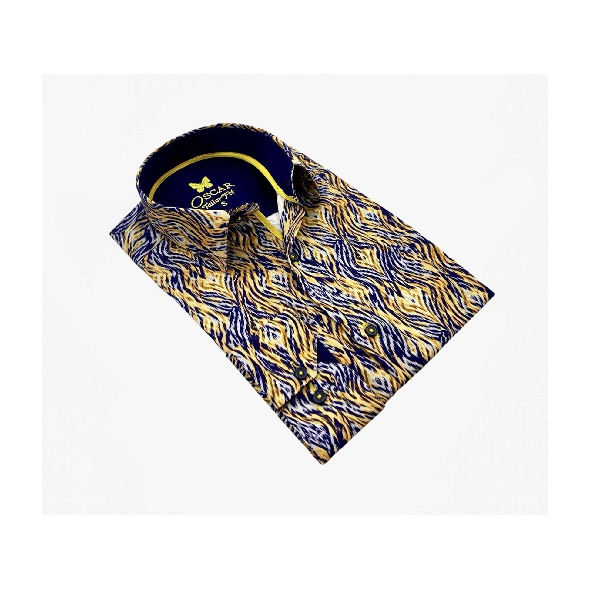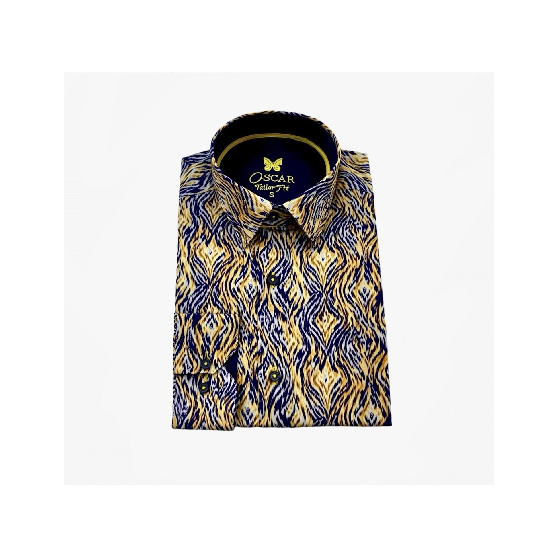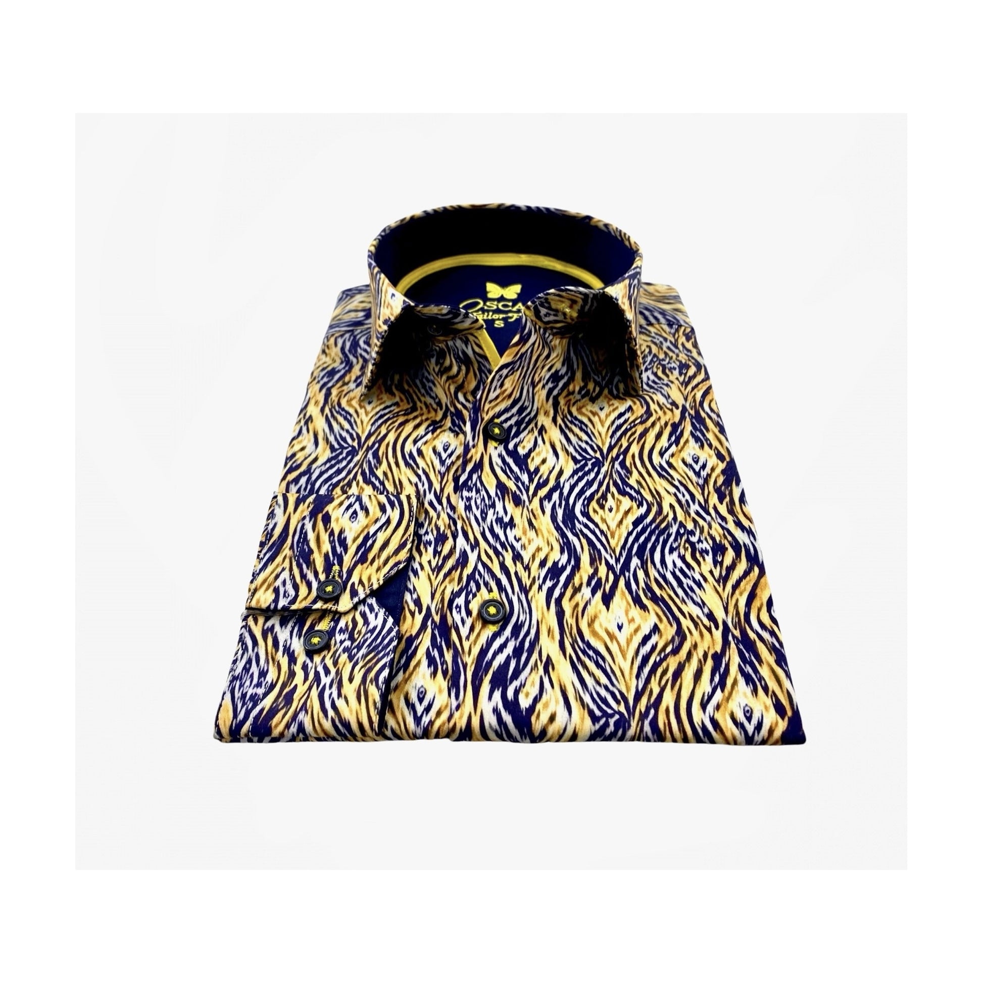 Dieses exklusive Hemd aus 100 % Baumwollsatin mit Digitaldruck wird in einer limitierten Serie hergestellt. Es verleiht Ihnen ein markantes und einzigartiges Aussehen. Der Kragen hat einen versteckten Knopf, um den Kragen gerade zu halten und die Manschette ist unisex (Manschettenknöpfe möglich).