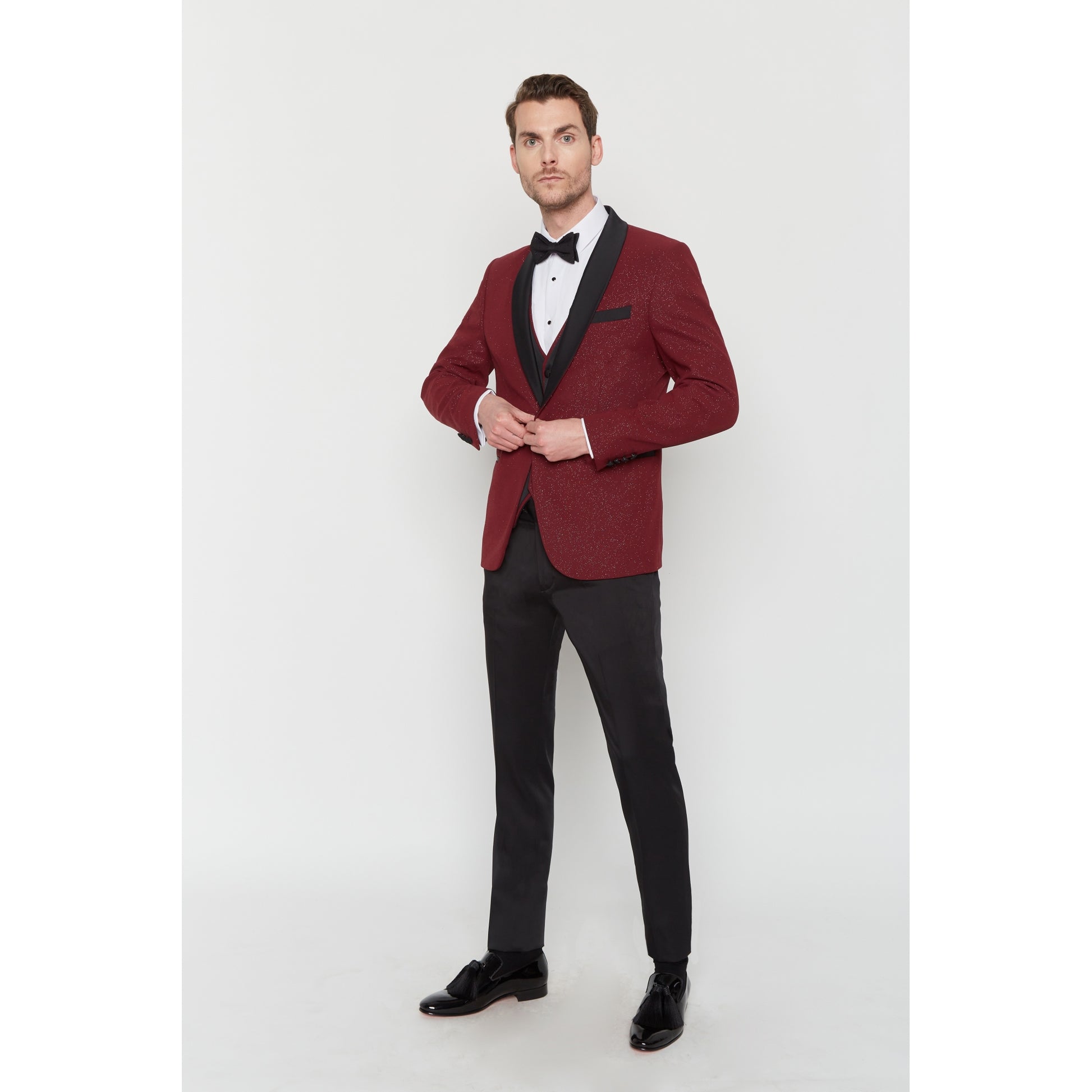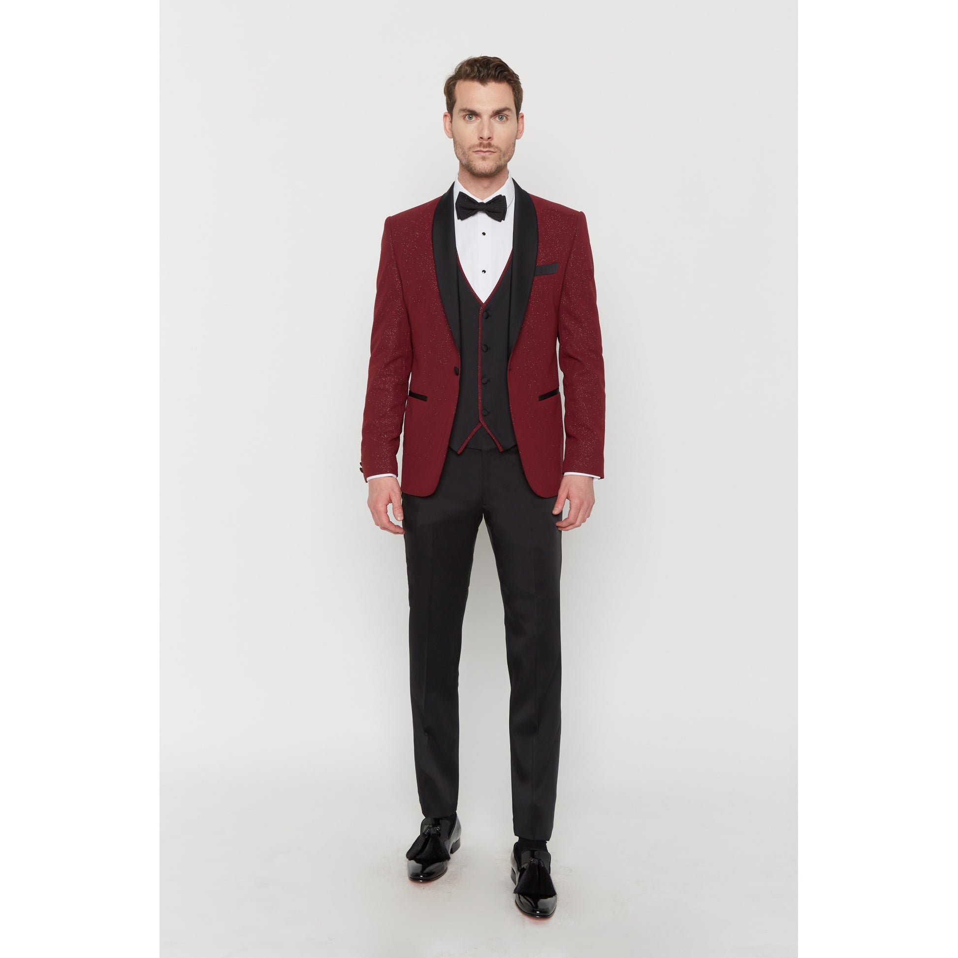 Burgunderfarbener Vegas-Smoking, 3-teilig