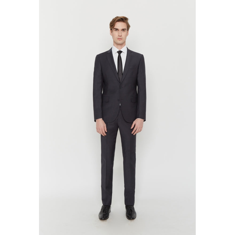 Stadtanzug aus 150er-Wolle und Lycra für unvergleichlichen Komfort. Jacke mit maßgeschneidertem Kragen und Hose mit italienischen Taschen.