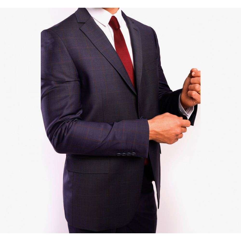 Carlton 150's Navy 10 Burgundy Check 2-teiliger Anzug