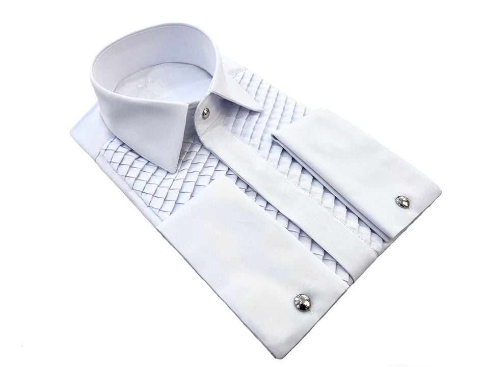 Dieses Hemd aus bügelleichtem Stoff verleiht Ihnen Eleganz und Komfort für alle Ihre besonderen Anlässe. Hemd mit französischem Kragen, plissiertem Latz und sichtbaren schwarzen Metallknöpfen. Musketiergriff mit abnehmbarem schwarzem Metallknopf.             ⦁ Passend zu jedem Anzug ⦁ Elegant und weich ⦁ Aus weichem Kaschmir