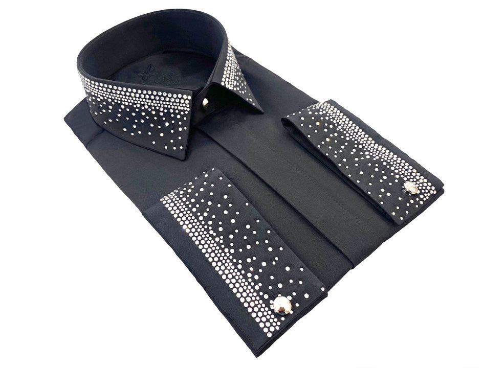 Dieses Hemd aus bügelleichtem Stoff verleiht Ihnen Eleganz und Komfort für alle Ihre besonderen Anlässe. Hemd mit französischem Kragen, plissiertem Latz und sichtbaren schwarzen Metallknöpfen. Musketiergriff mit abnehmbarem schwarzem Metallknopf.