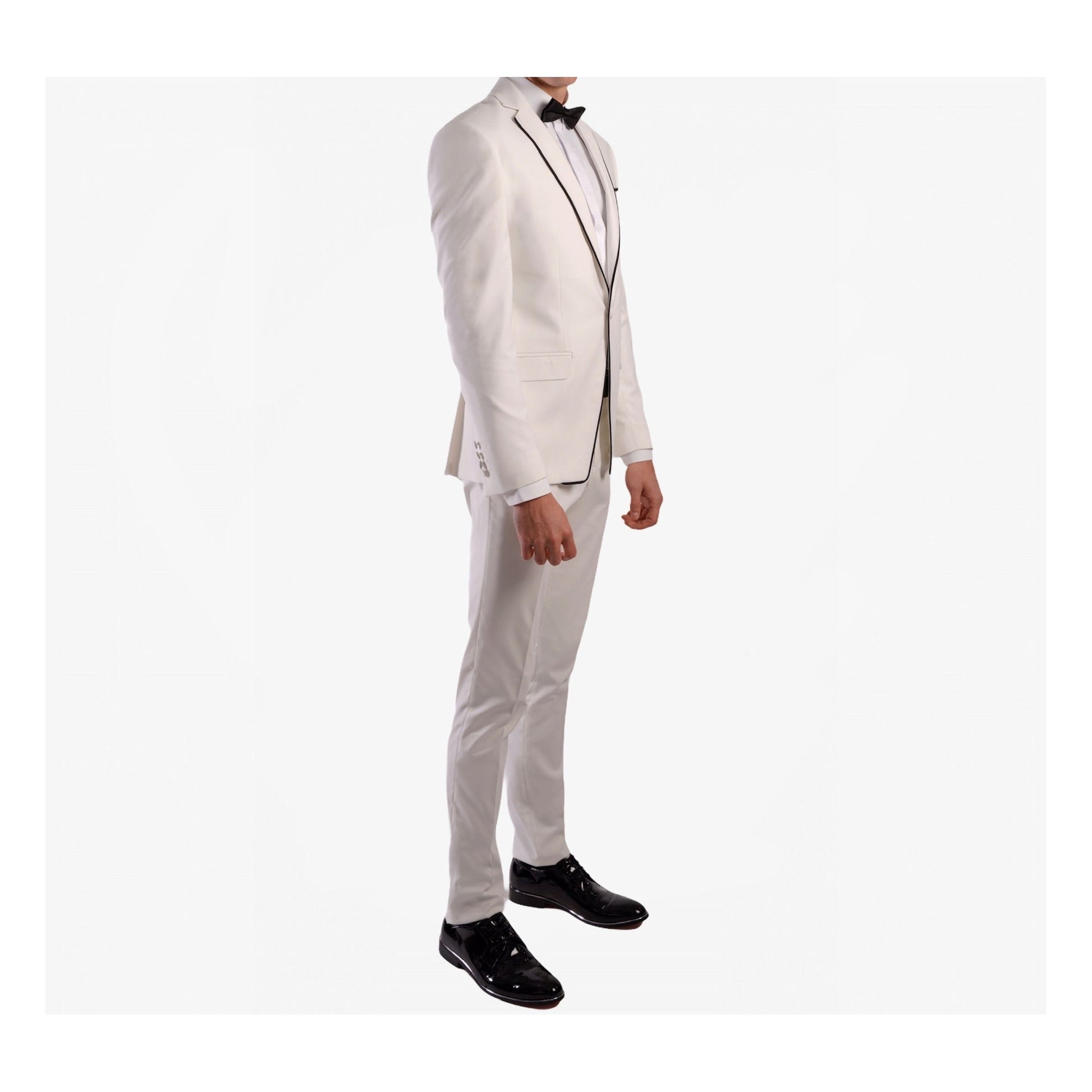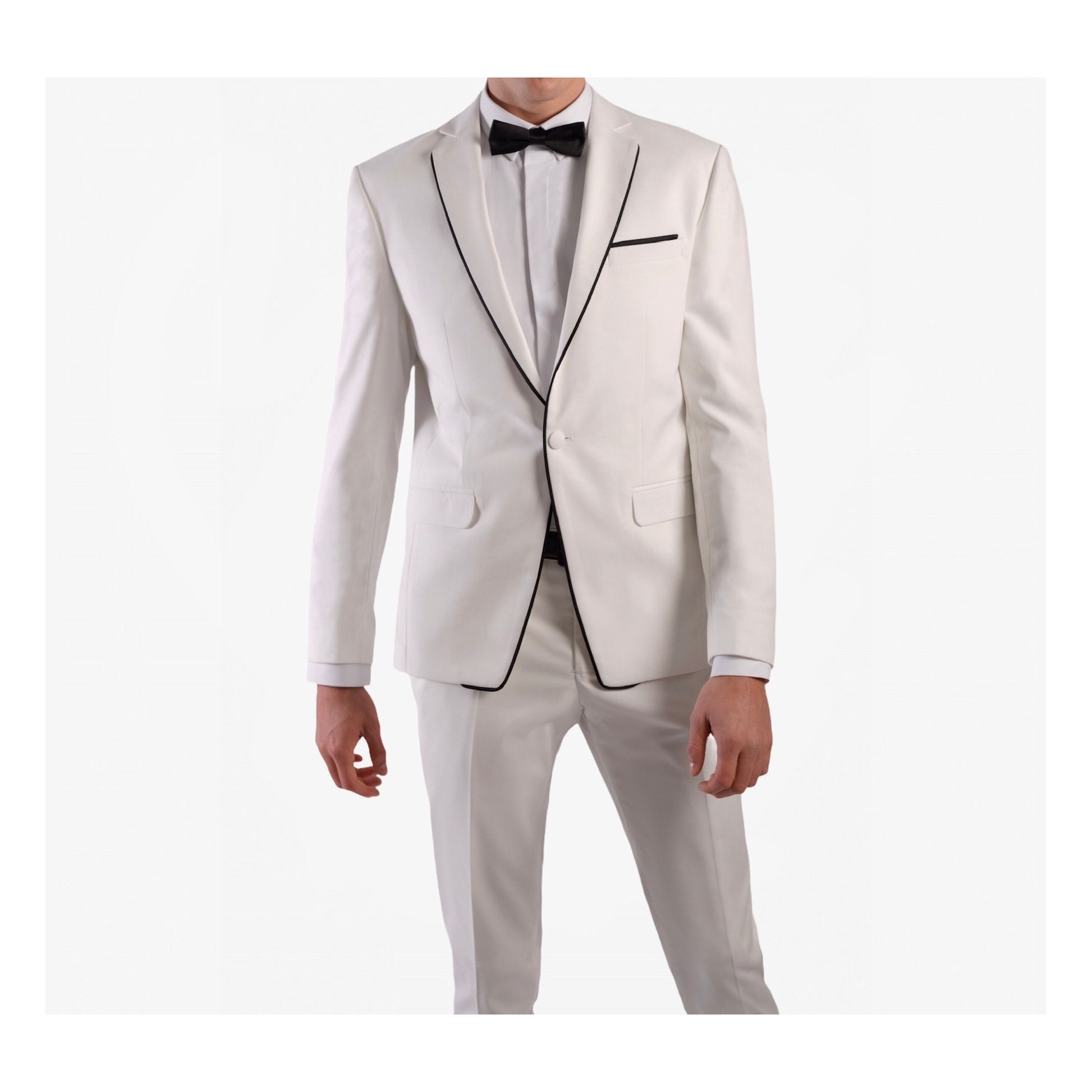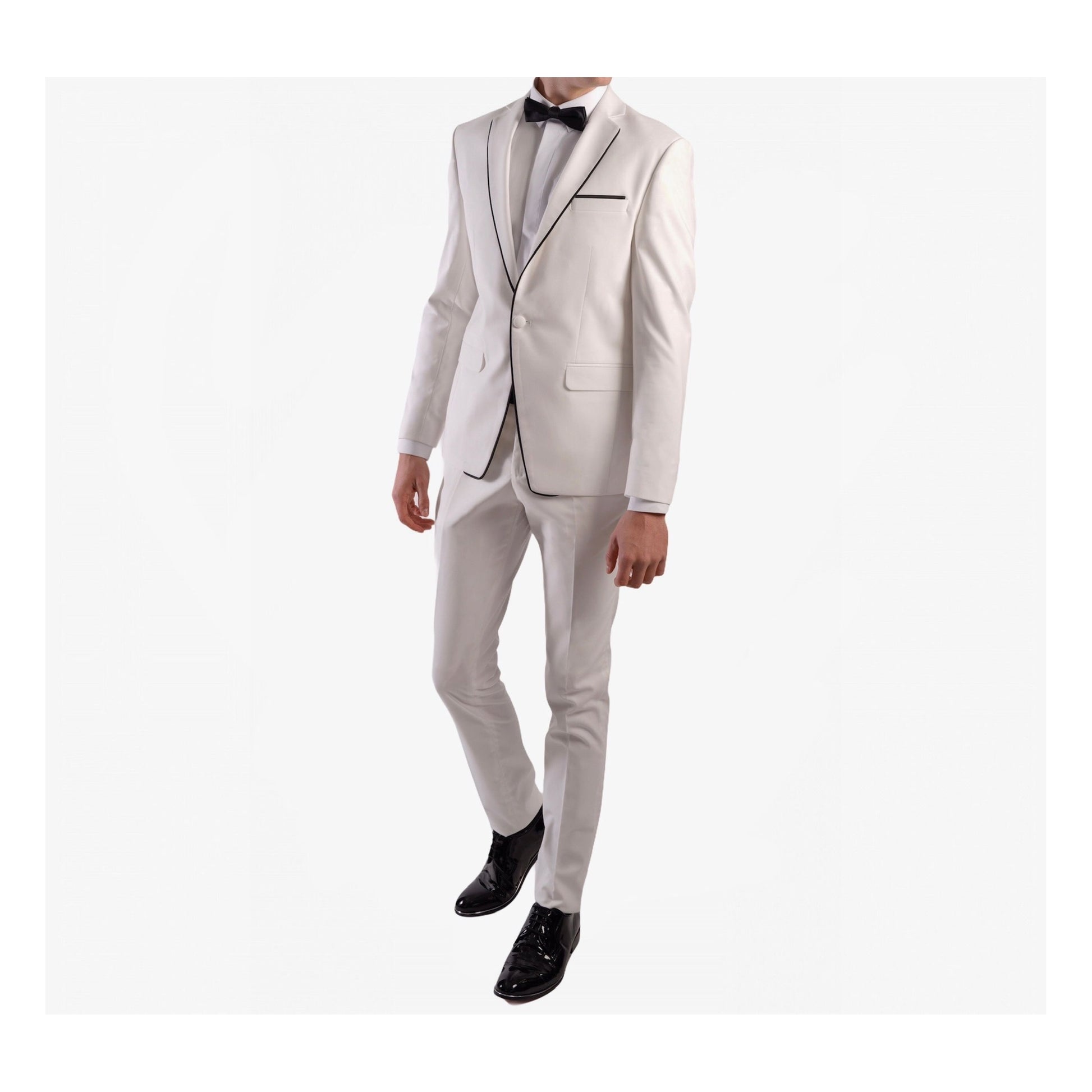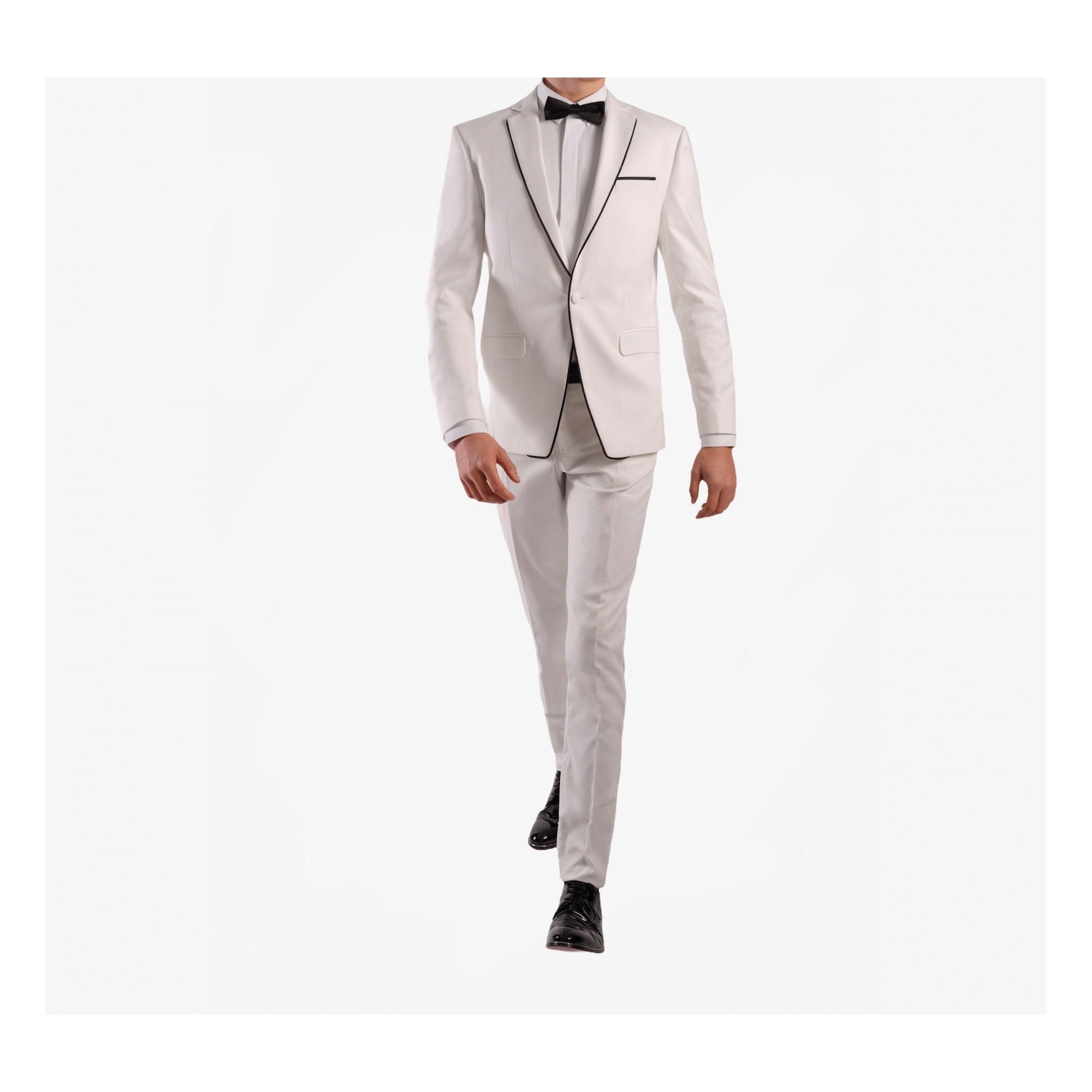 Dieser Smoking aus Wollmischung verfügt über Lycra für optimalen Komfort. Dieses körperbetonte Set besteht aus einer Jacke mit geflochtenem Kragen, 2 Pattentaschen und einer Hose mit Reißverschluss und italienischen Taschen.