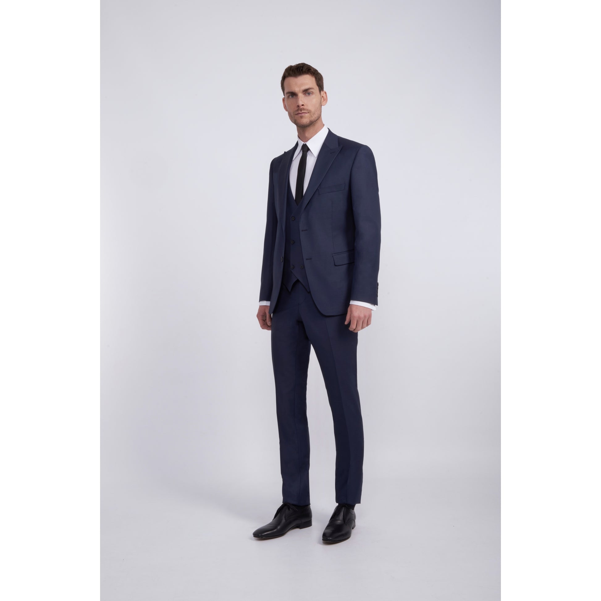 Dreiteiliger Anzug mit spitzem Kragen. Woll- und Lycra-Stoff, sehr angenehm zu tragen.