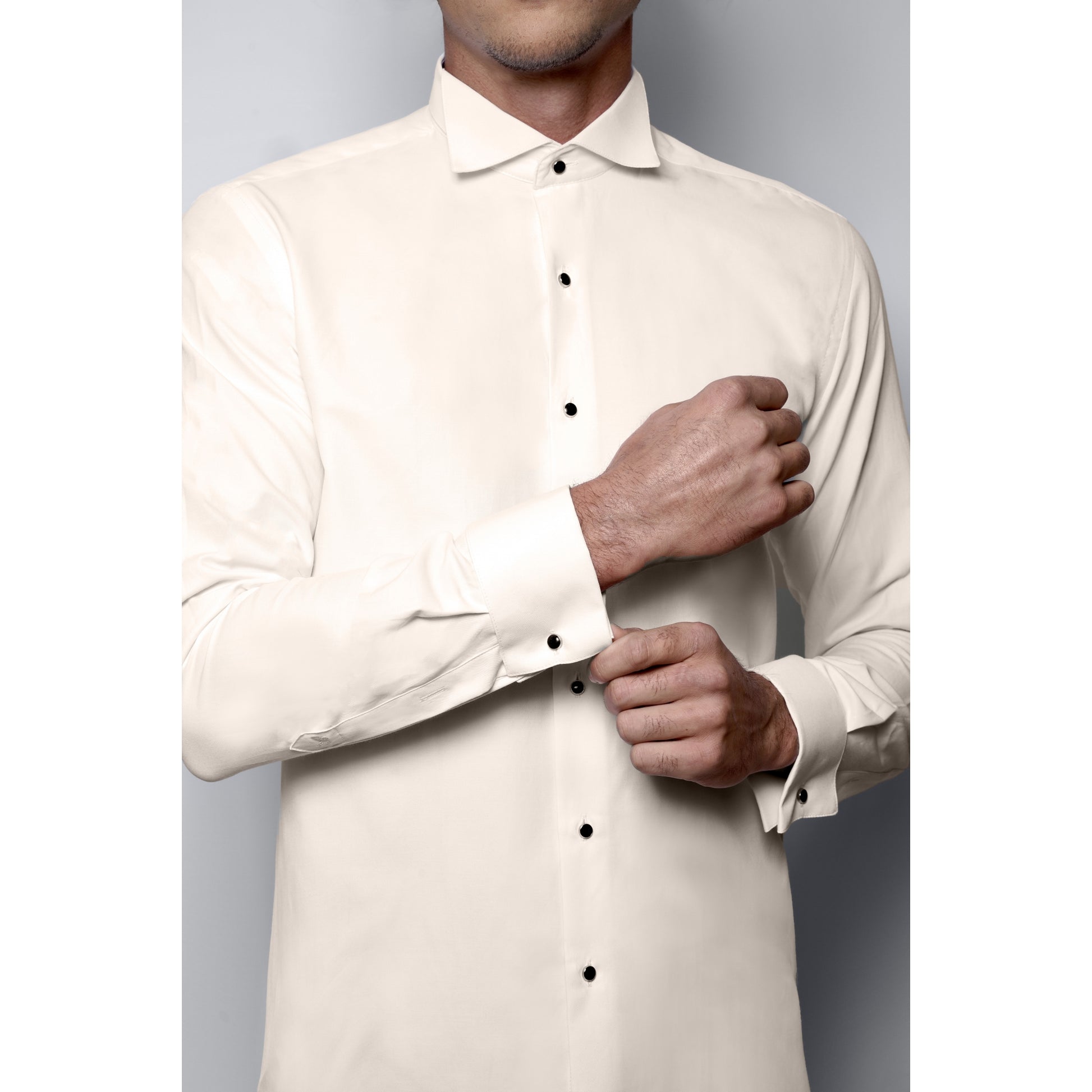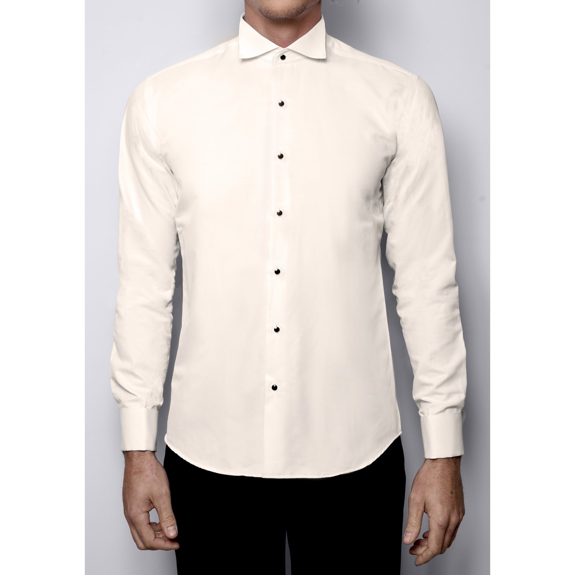Dieses Hemd aus bügelleichtem Stoff verleiht Ihnen Eleganz und Komfort für alle Ihre besonderen Anlässe. Hemd mit gebrochenem Kragen und versteckter Lasche für die Fliege. Ein schickes und perfekt passendes Hemd aus weichem Kaschmir. Sorgt für ein wohles Gefühl bei jedem Event.  ⦁ Passend zu jedem Anzug ⦁ Elegant und weich ⦁ Aus weichem Kaschmir