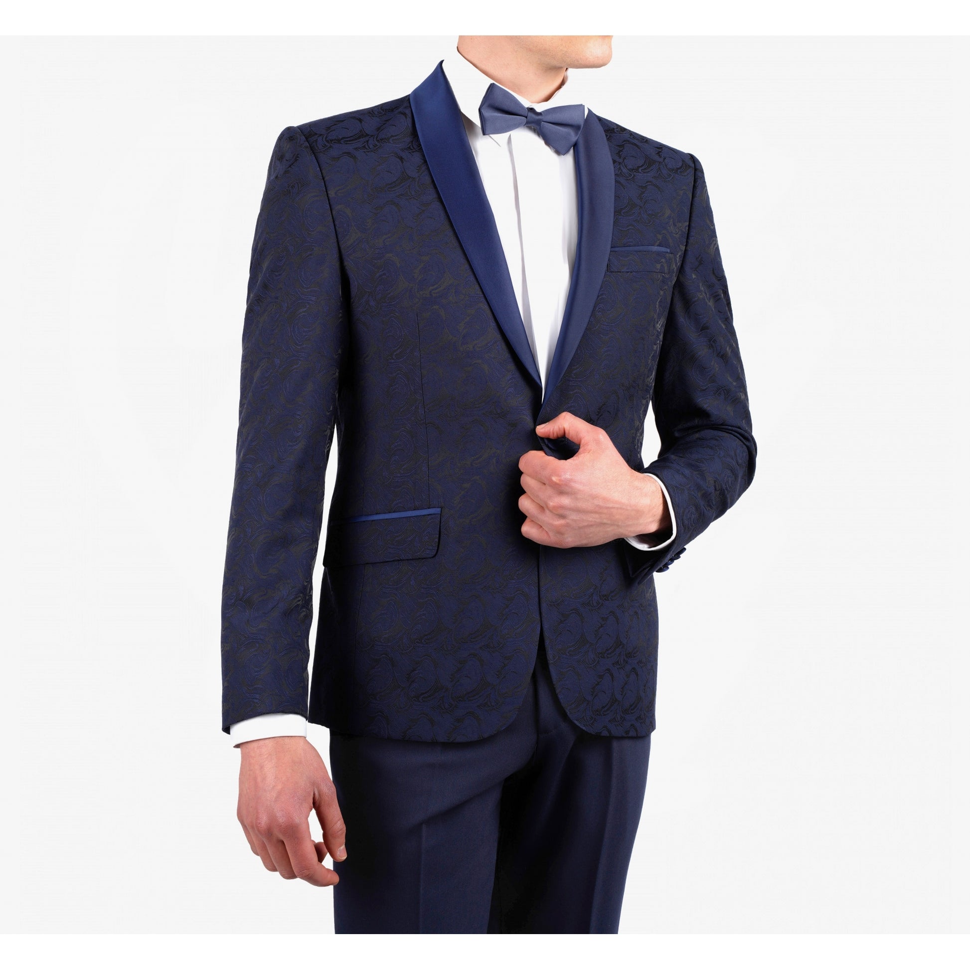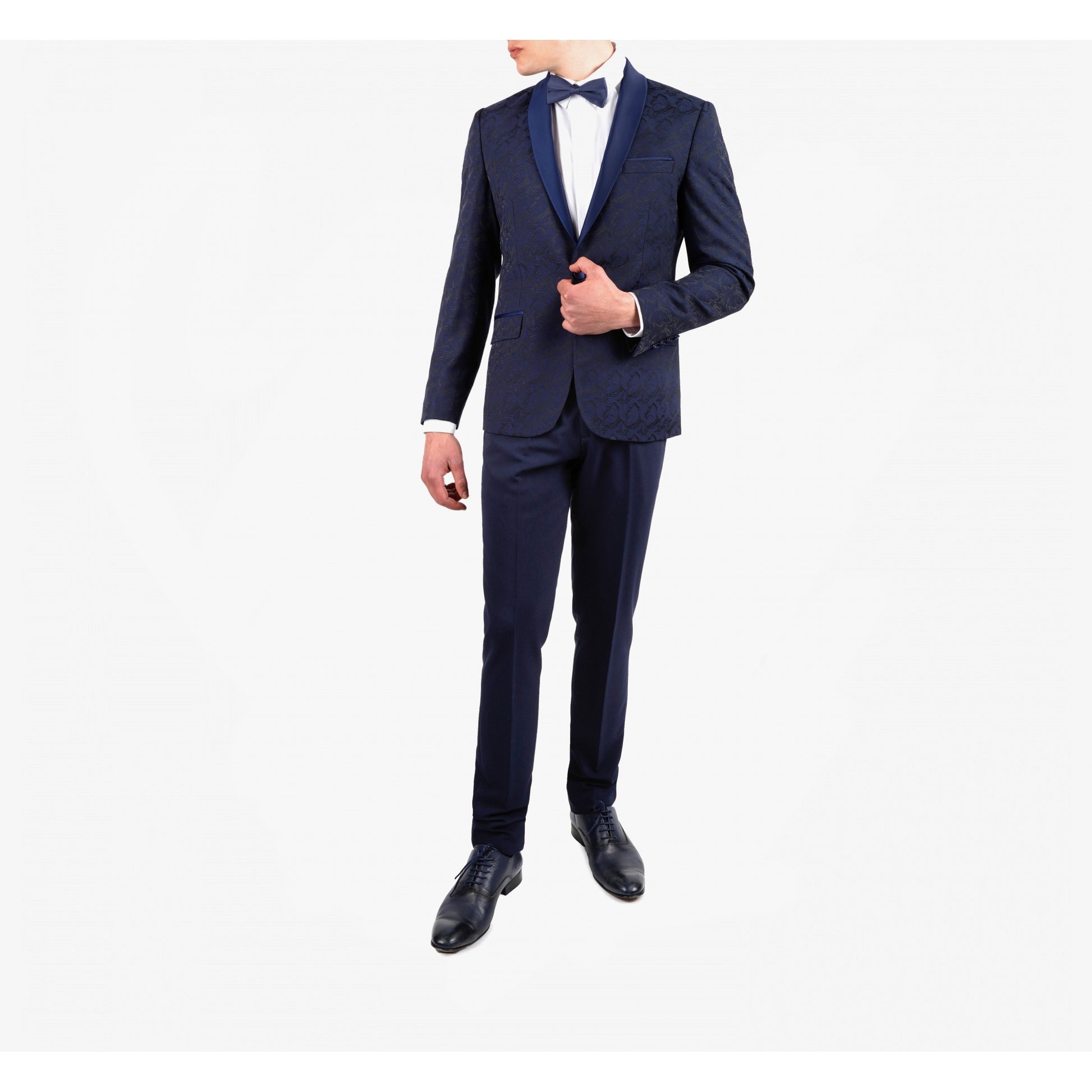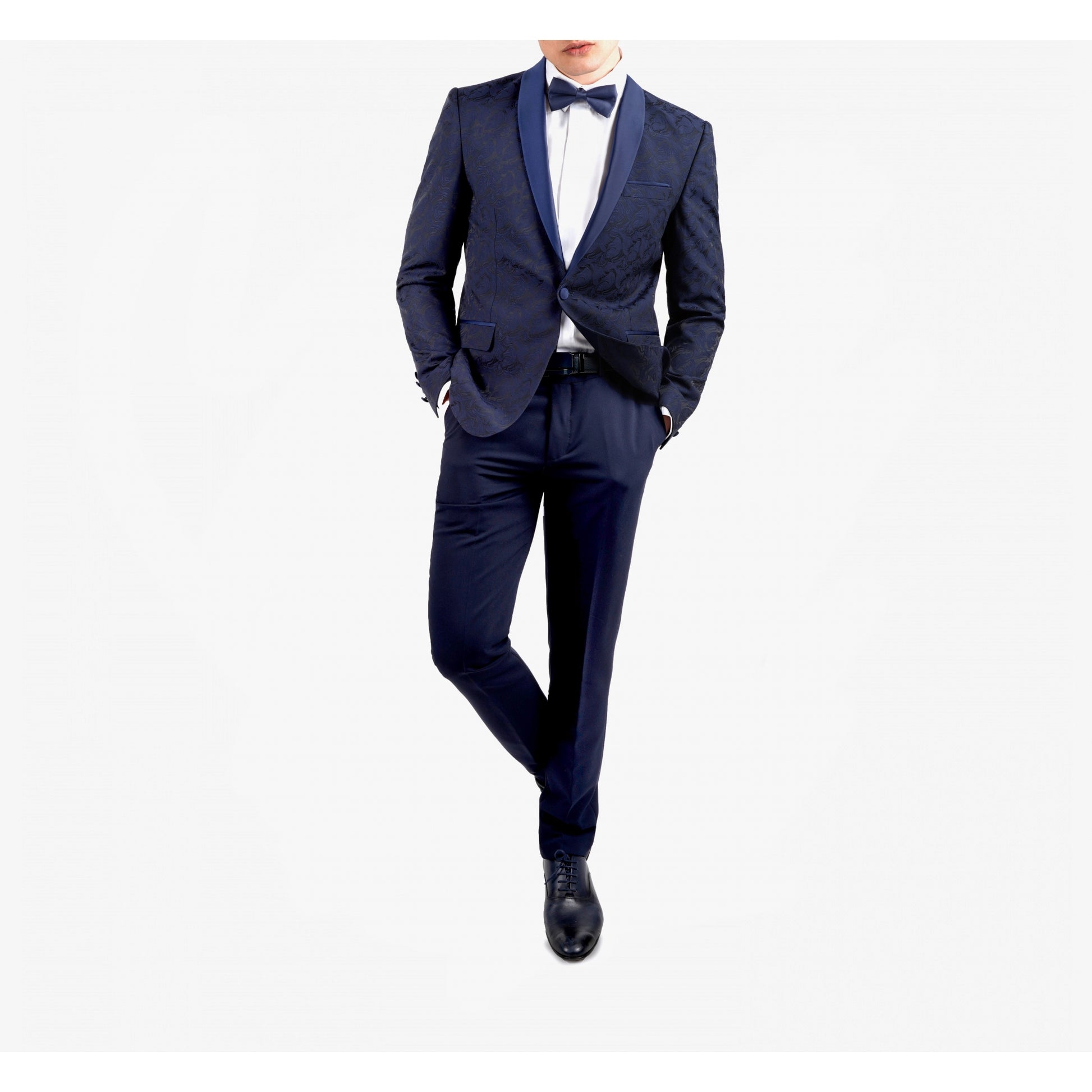 Dieser Smoking aus Wollmischung verfügt über Lycra für optimalen Komfort. Dieses körperbetonte Set besteht aus einer Satinjacke mit Schalkragen und 2 Pattentaschen und einer Hose mit Reißverschluss und 2 italienischen Taschen.