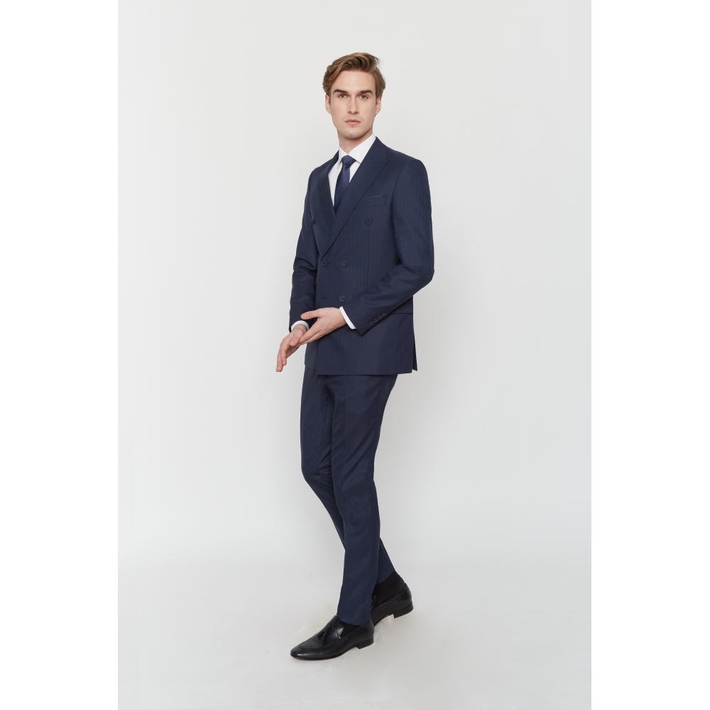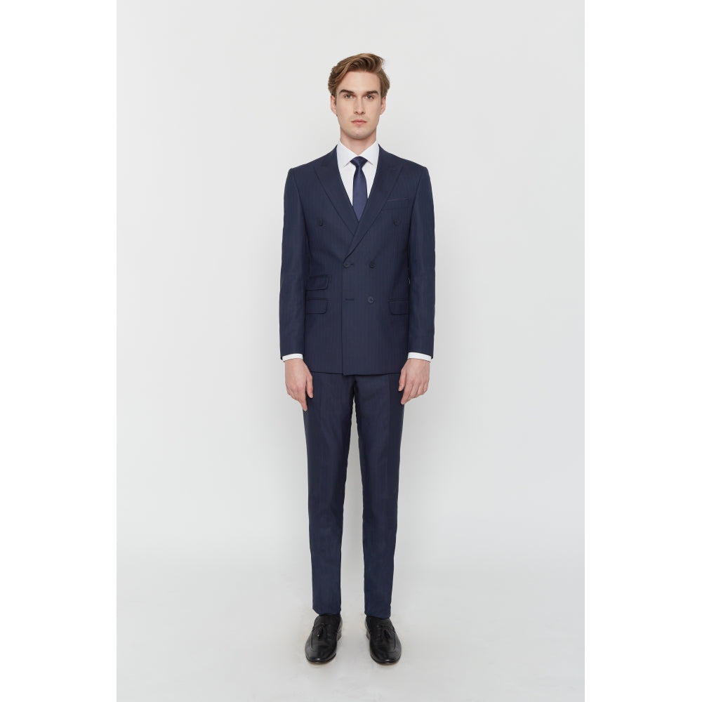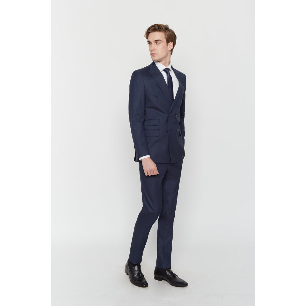 Crossover-Anzug mit 2 Knöpfen.Taillierte, schmale Hose, tennis-gestreifter Stoff.