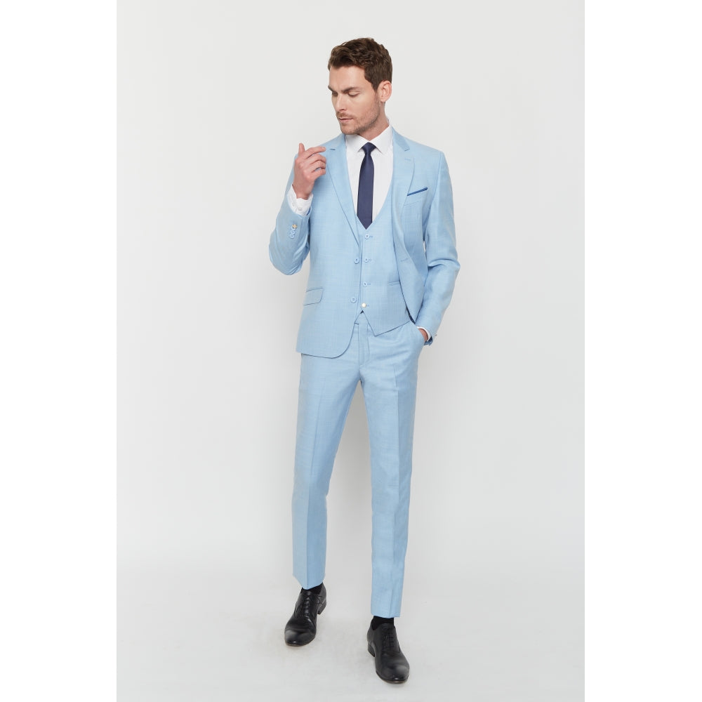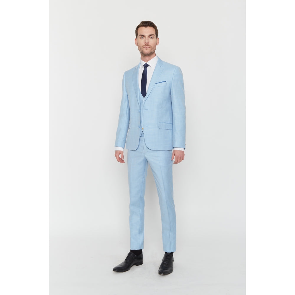 Dieser Anzug aus Wollmischung verfügt über Lycra für optimalen Komfort. Dieses körperbetonte Set besteht aus einer Jacke mit Reverskragen und 2 Pattentaschen auf der Vorderseite, einer Hose mit Reißverschluss und italienischer Tasche und einer passenden Weste.