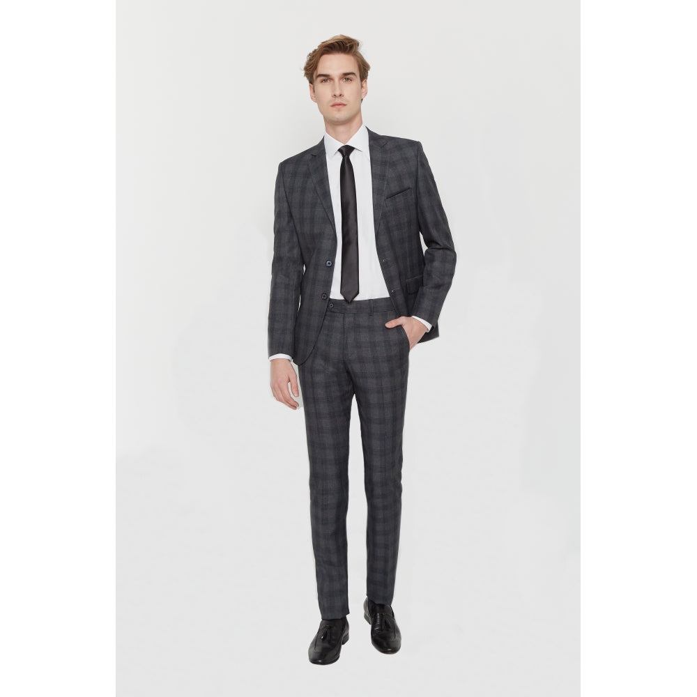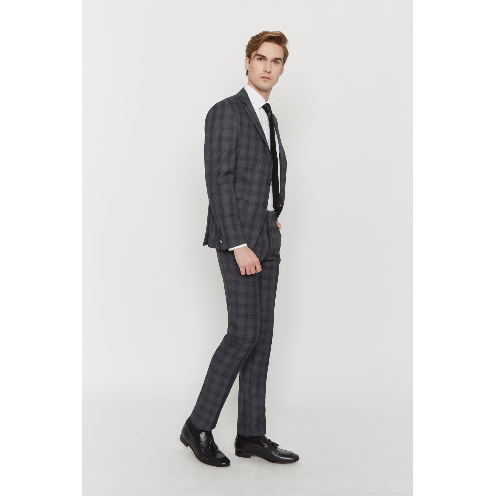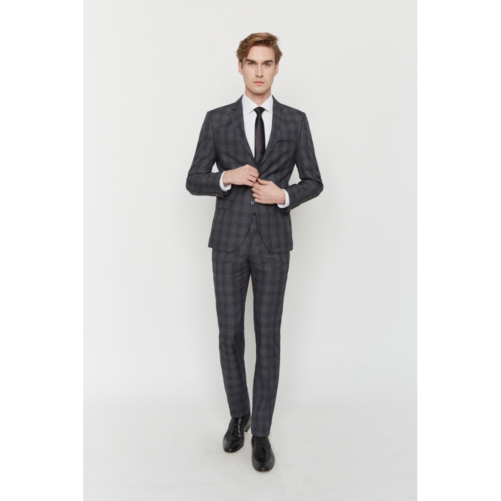 Dieser Anzug aus Wollmischung verfügt über Lycra für optimalen Komfort. Dieses körperbetonte Set besteht aus einer Jacke mit Reverskragen und zwei Pattentaschen auf der Vorderseite, einer Hose mit Reißverschluss und italienischer Tasche sowie einer passenden Weste.