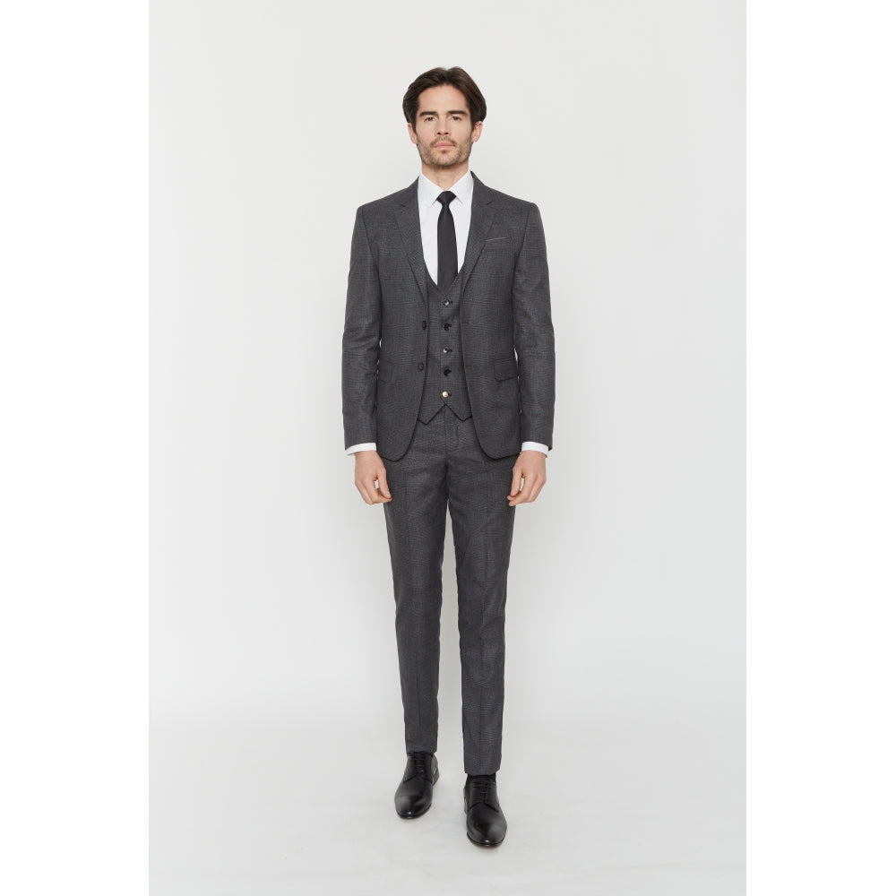 Dieser Anzug aus Wollmischung verfügt über Lycra für optimalen Komfort. Dieses körperbetonte Set besteht aus einer Jacke mit Reverskragen und 2 Pattentaschen auf der Vorderseite, einer Hose mit Reißverschluss und italienischer Tasche und einer passenden Weste.