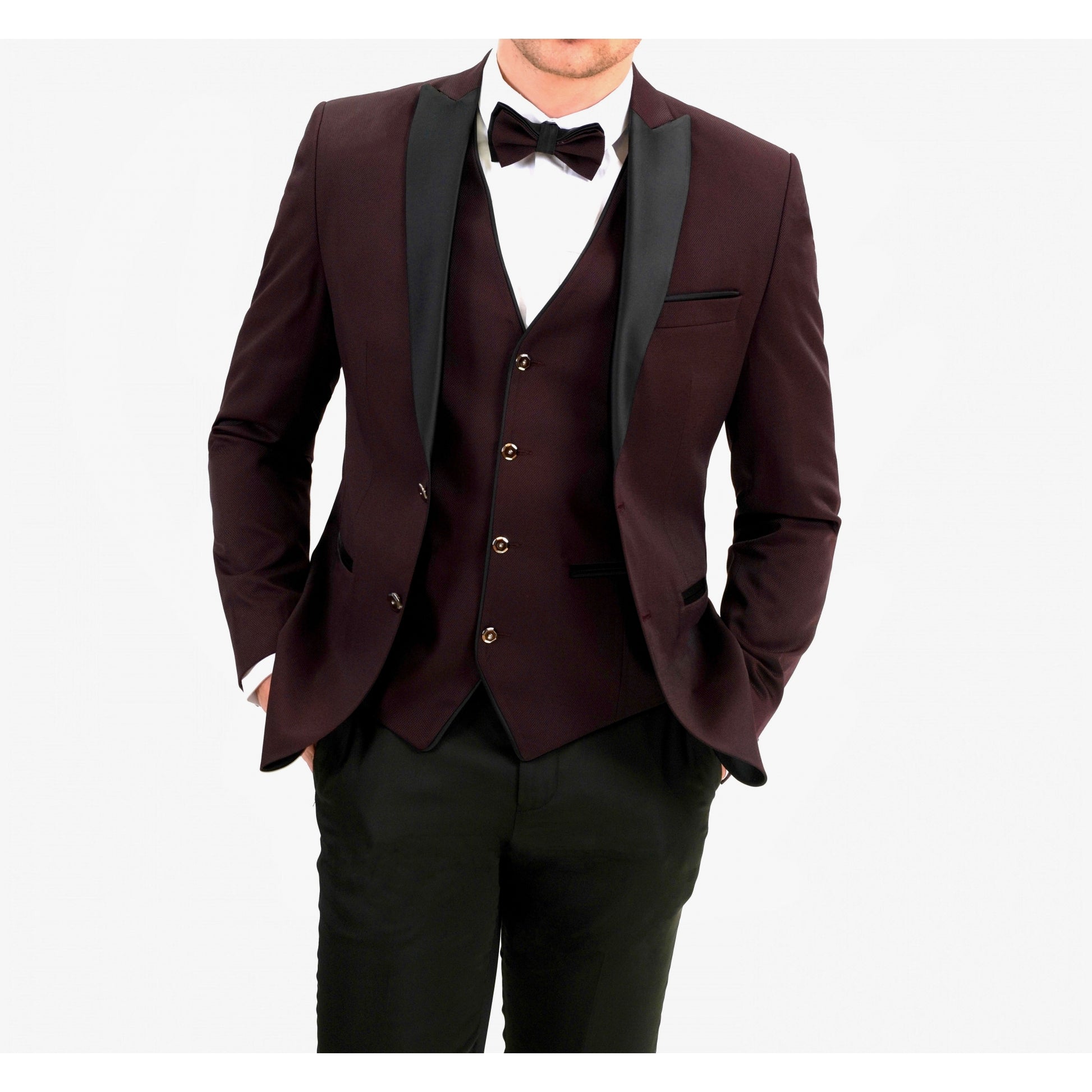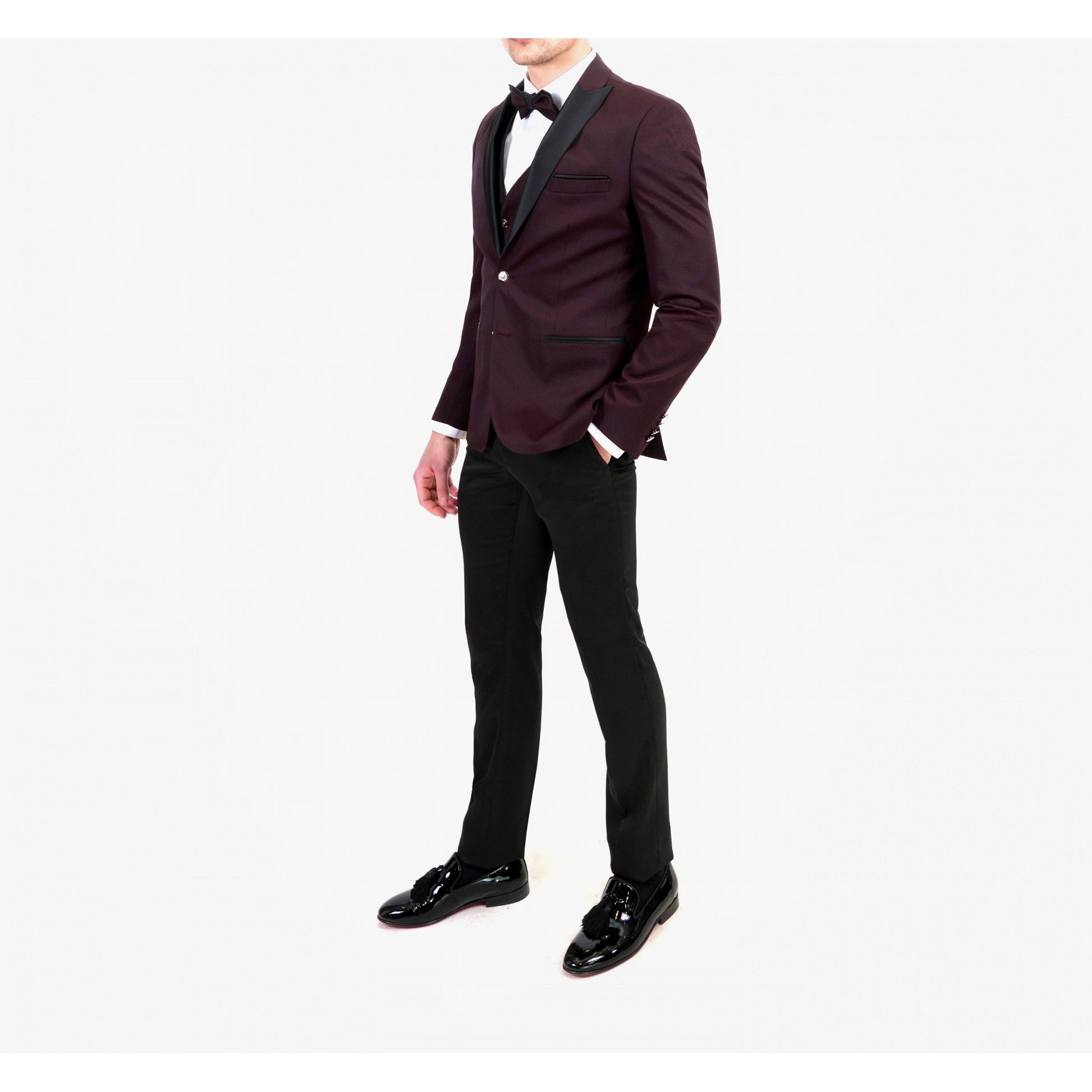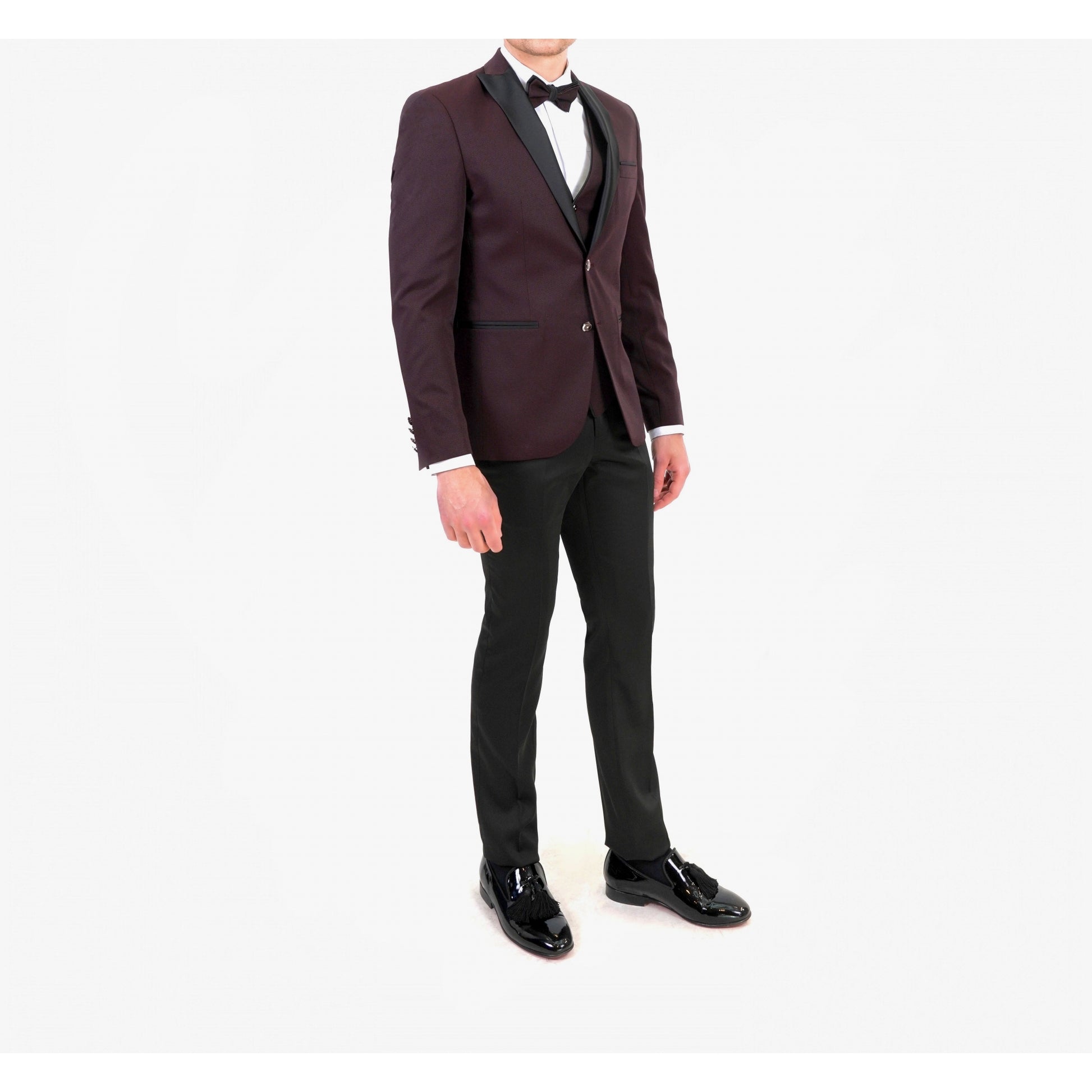 Zweifarbiger Smoking mit spitzem Kragen. Italienischer Schnitt, taillierte Jacke und schmale Hose.
