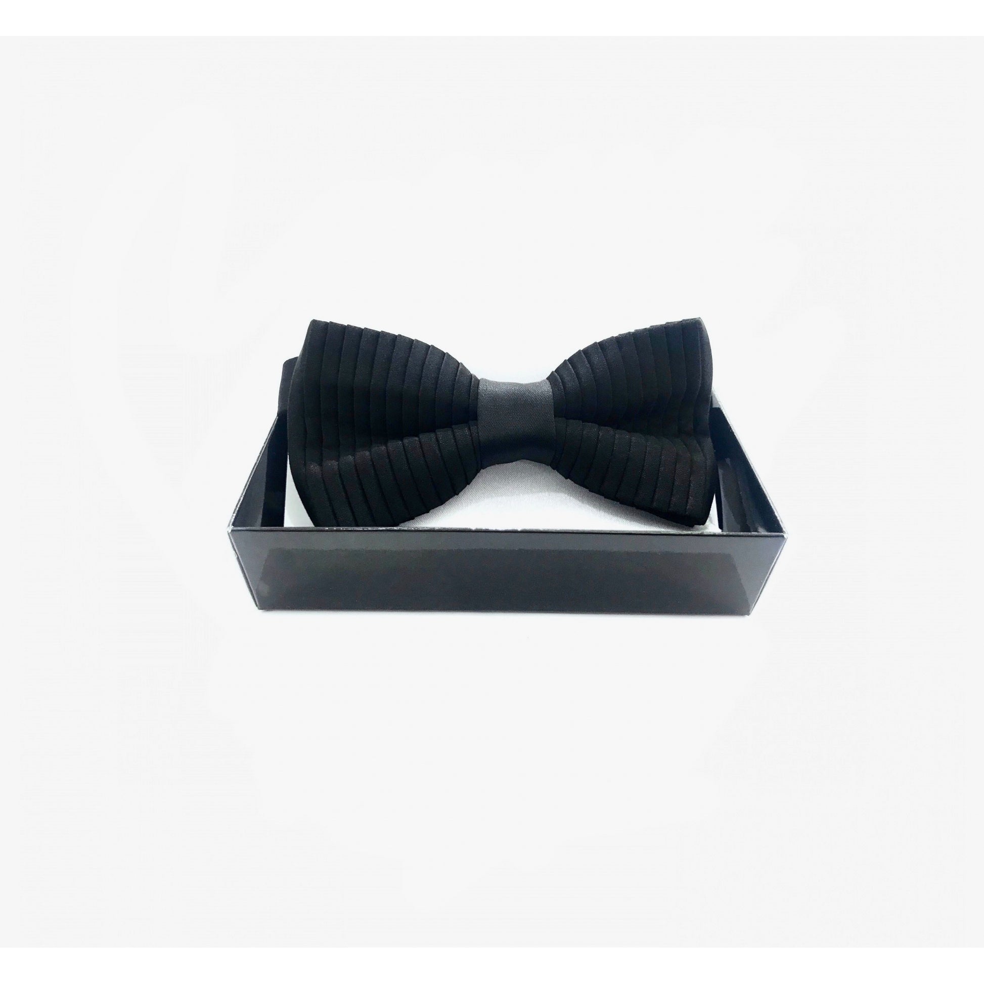 Schlichte, plissierte schwarze Fliege + passender Beutel