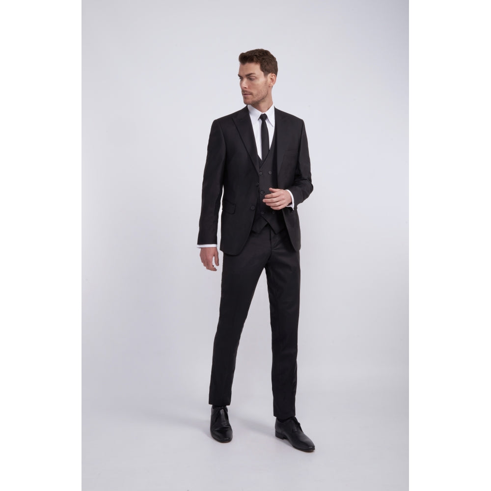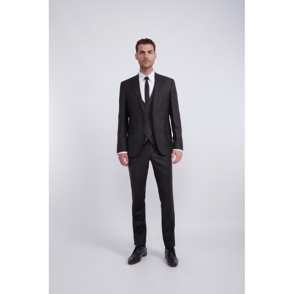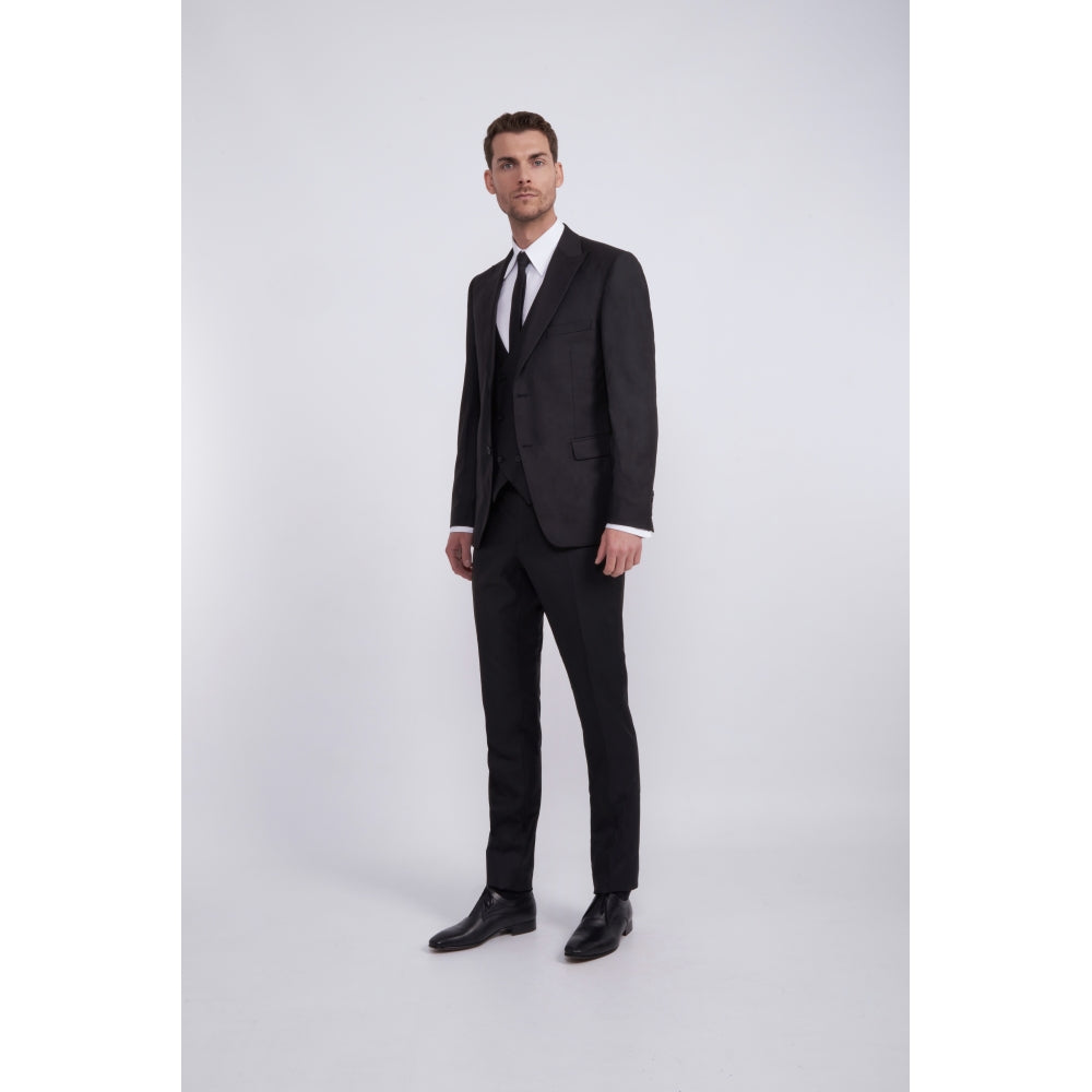 Dreiteiliger Anzug mit spitzem Kragen. Woll- und Lycra-Stoff, sehr angenehm zu tragen.