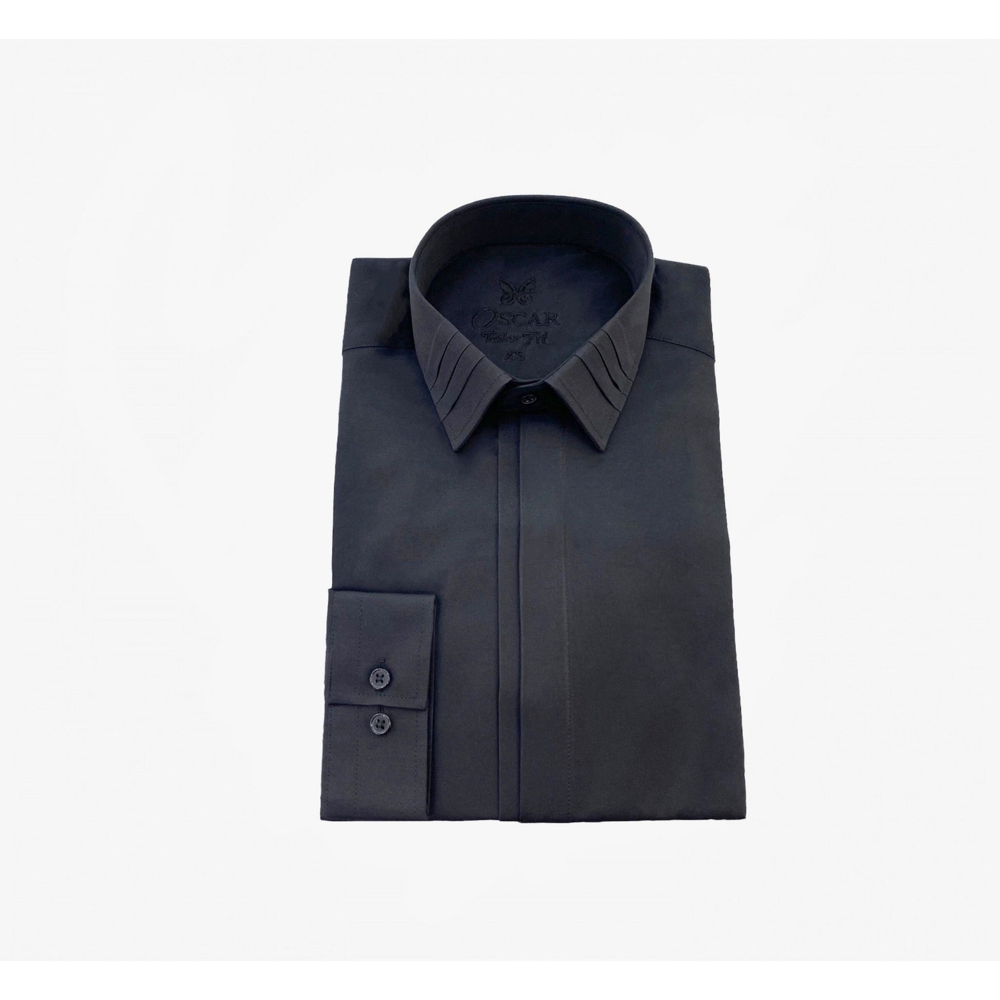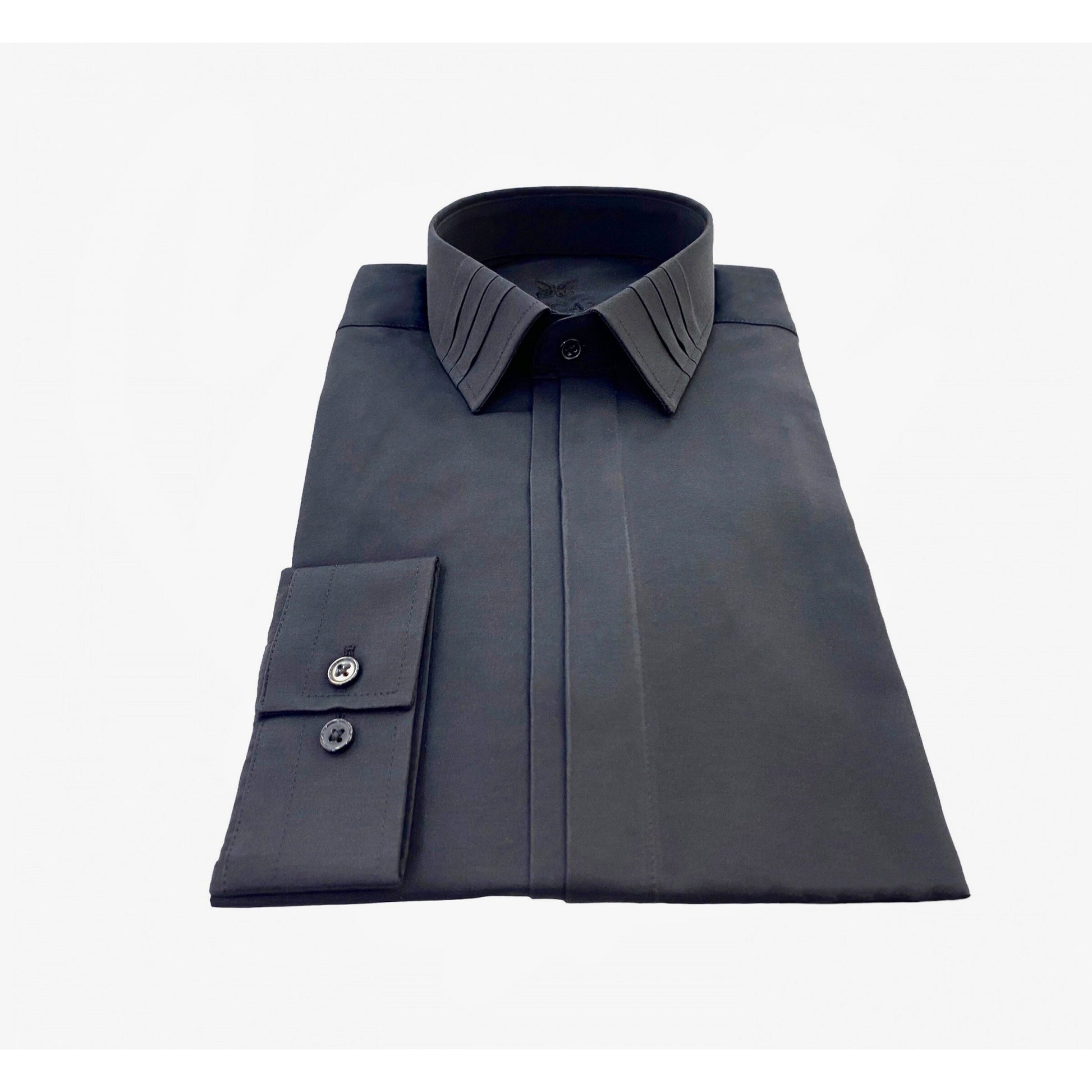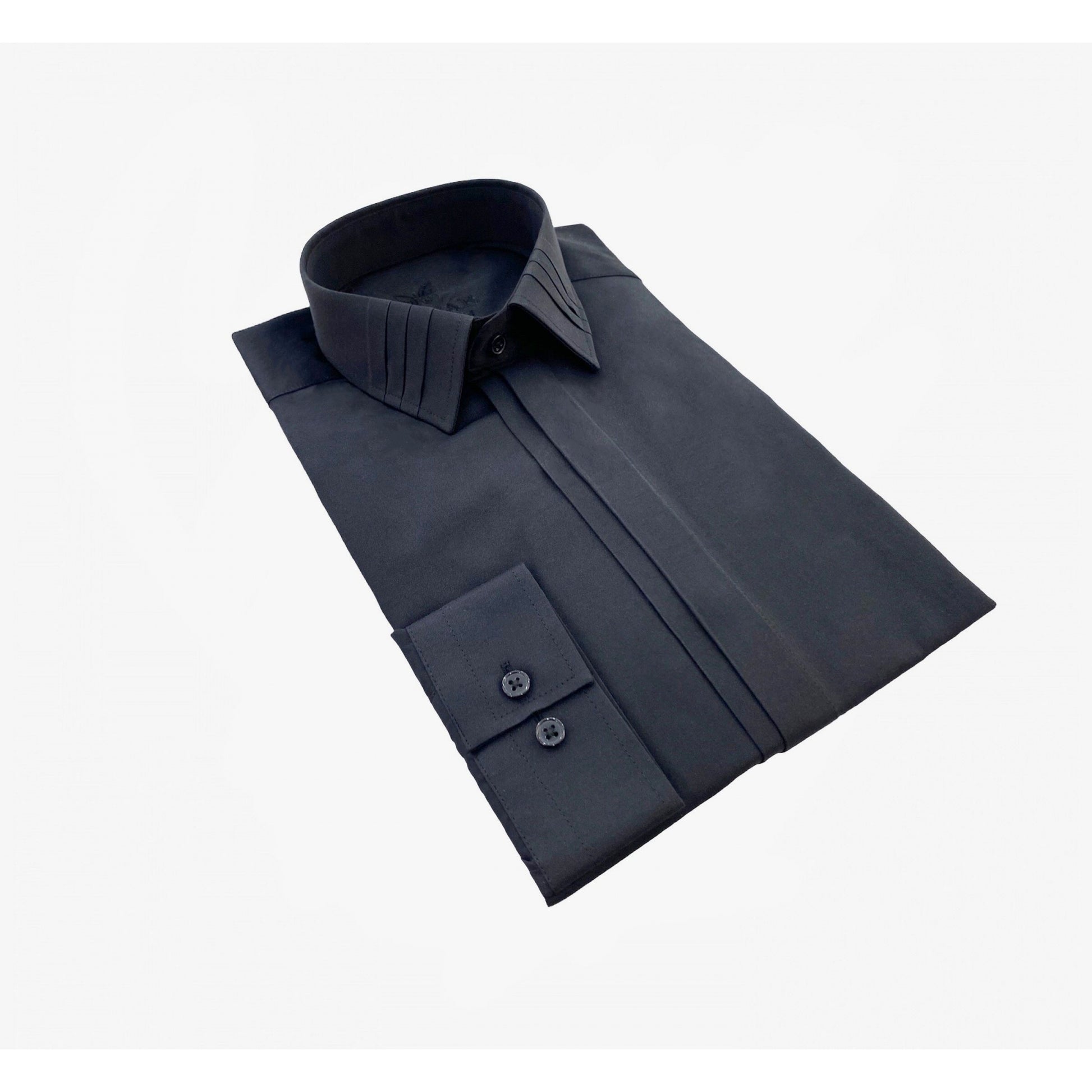 Schwarzes formelles Hemd mit Faltenkragen 601
