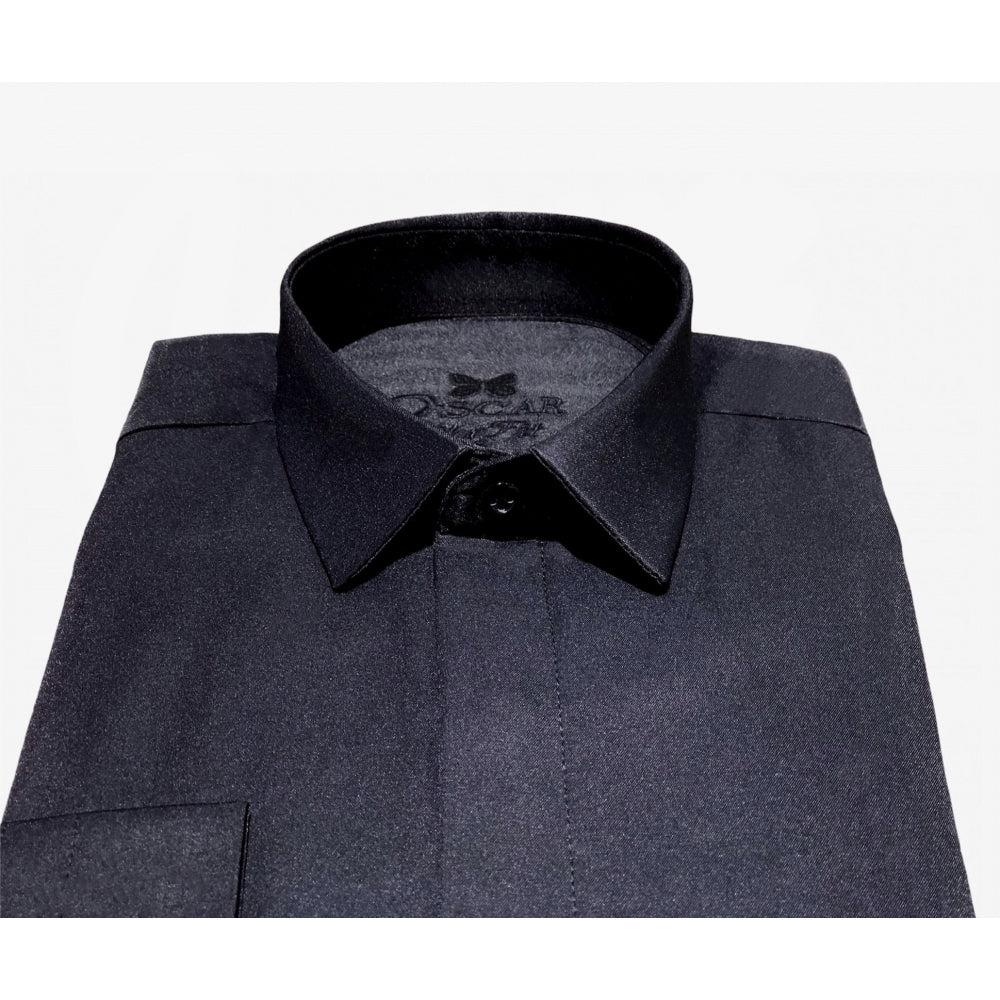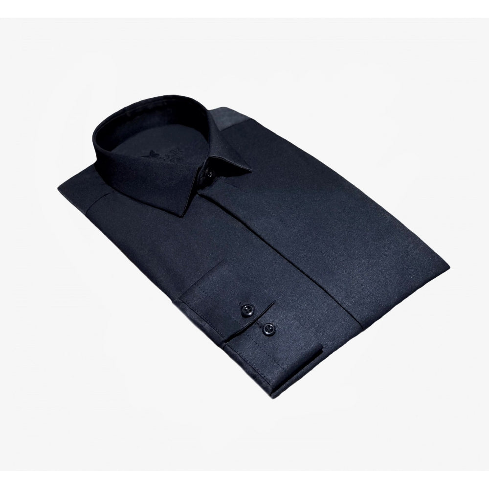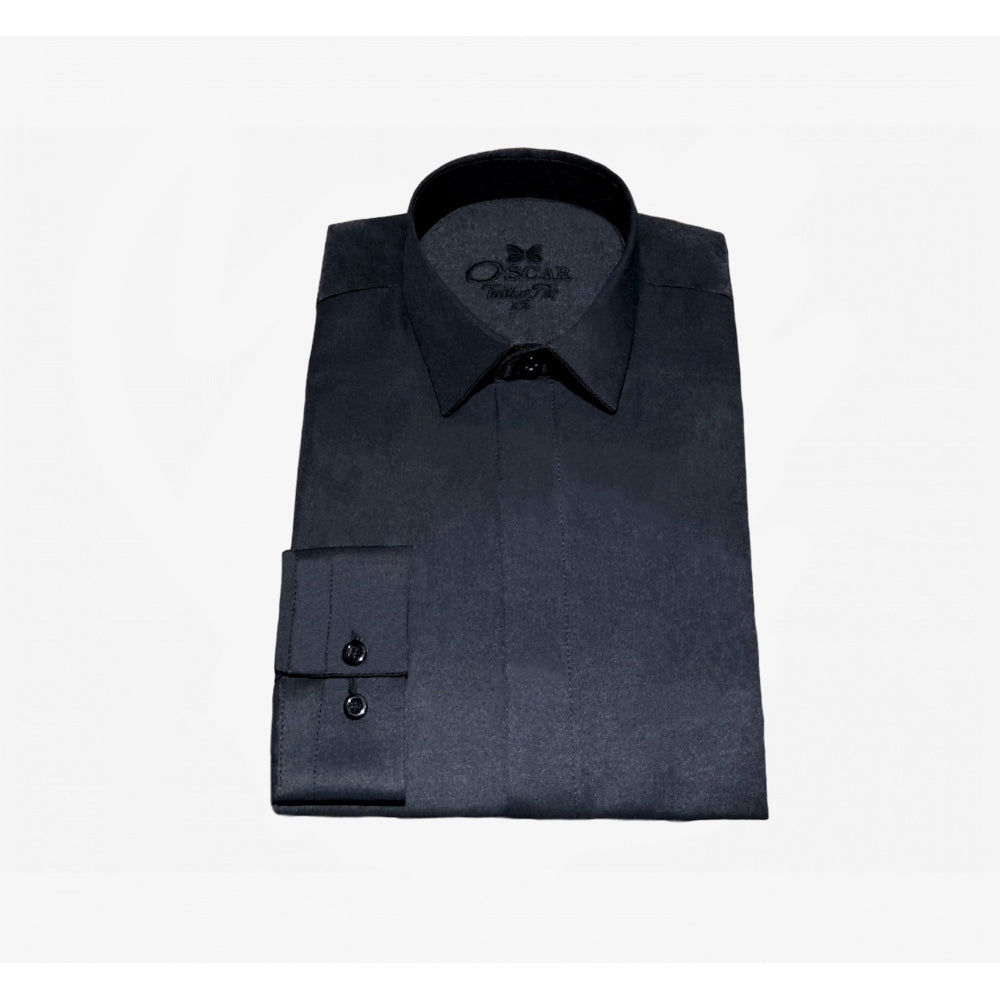 Schwarzes Hemd mit französischem Kragen und verdeckter Knopfleiste 550