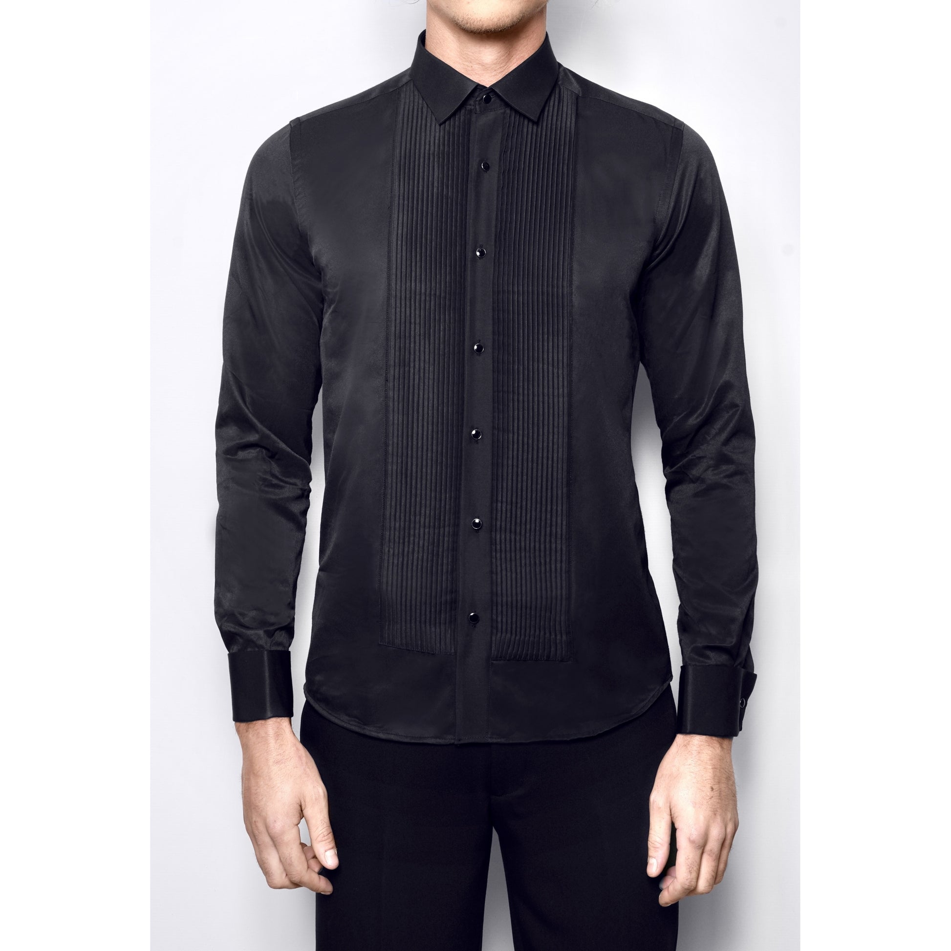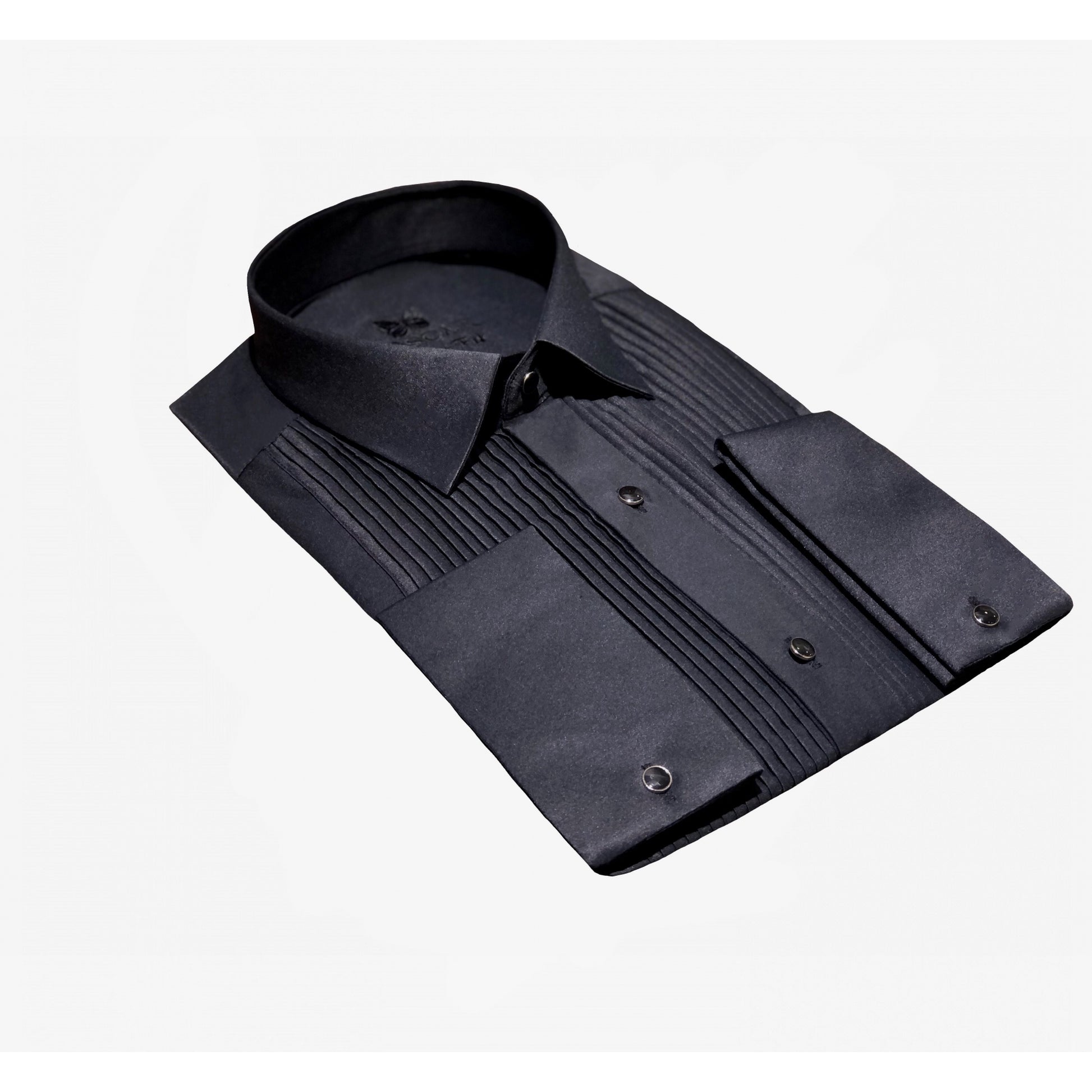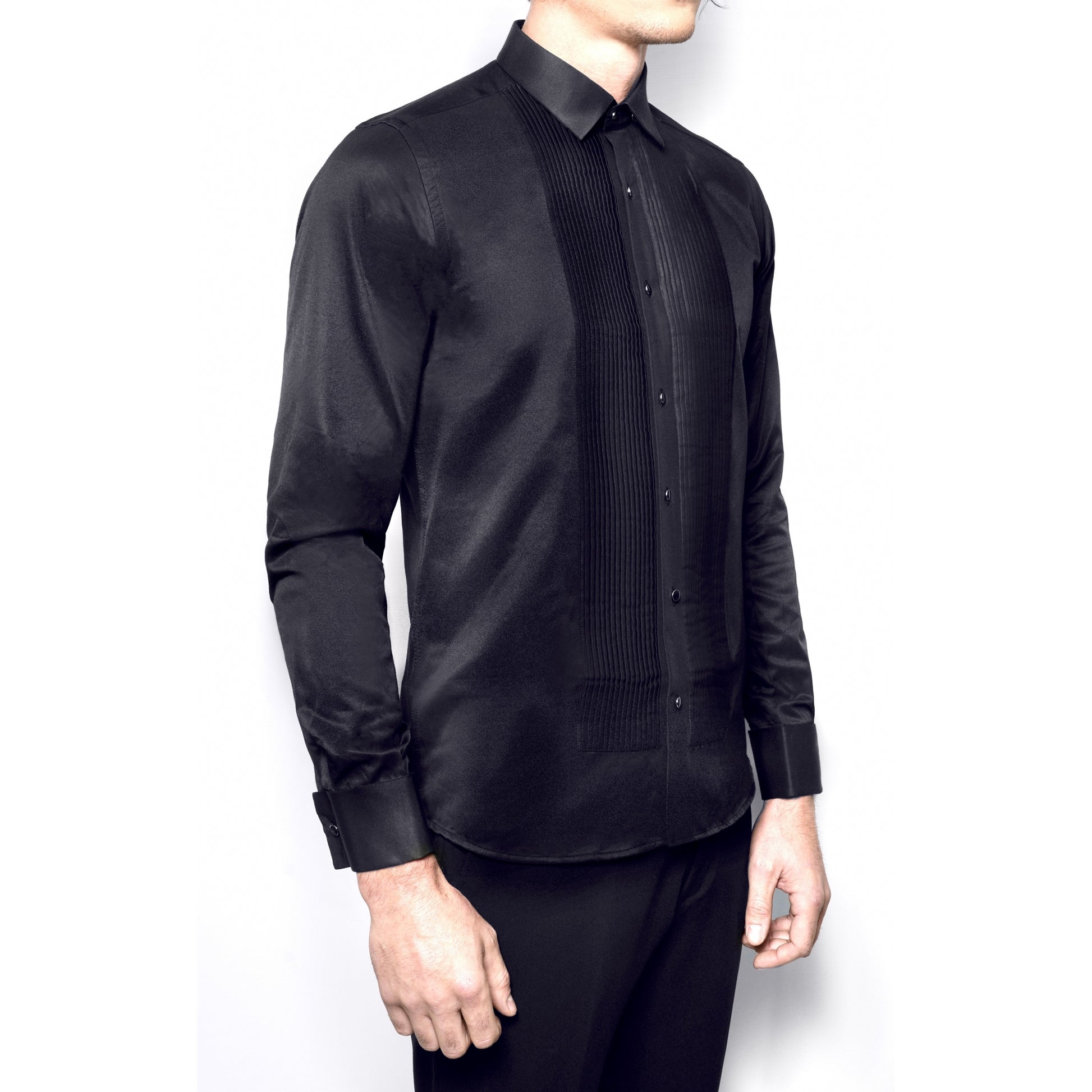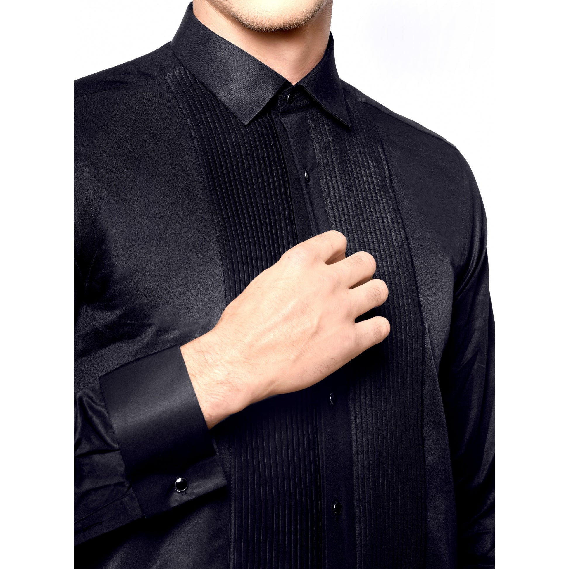 Dieses Hemd aus bügelleichtem Stoff verleiht Ihnen Eleganz und Komfort für alle Ihre besonderen Anlässe. Hemd mit französischem Kragen, plissiertem Latz und sichtbaren schwarzen Metallknöpfen. Musketiergriff mit abnehmbarem schwarzem Metallknopf. Ein schickes und perfekt passendes Hemd aus weichem Kaschmir. Sorgt für ein wohles Gefühl bei jedem Event.  ⦁ Passend zu jedem Anzug ⦁ Elegant und weich ⦁ Aus weichem Kaschmir