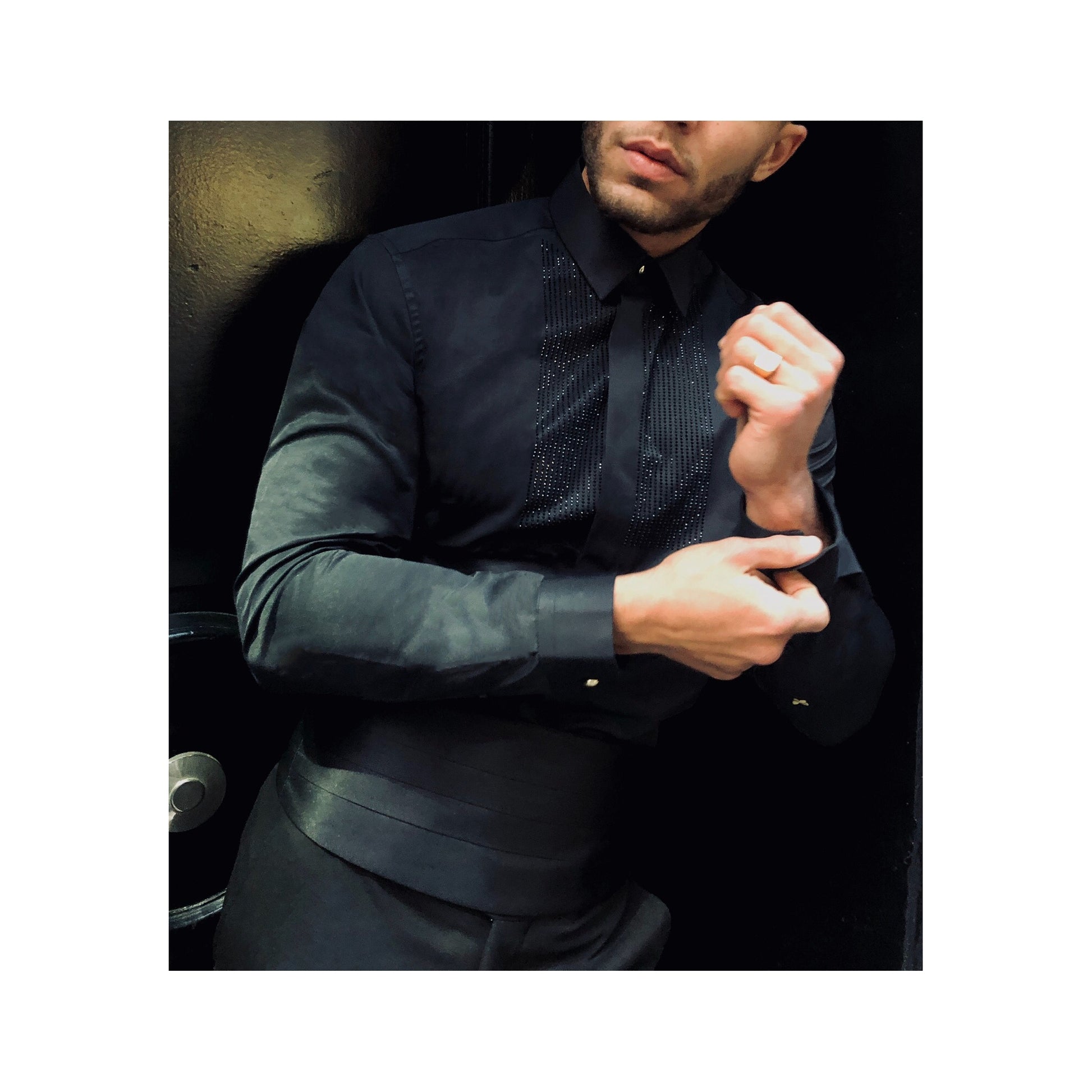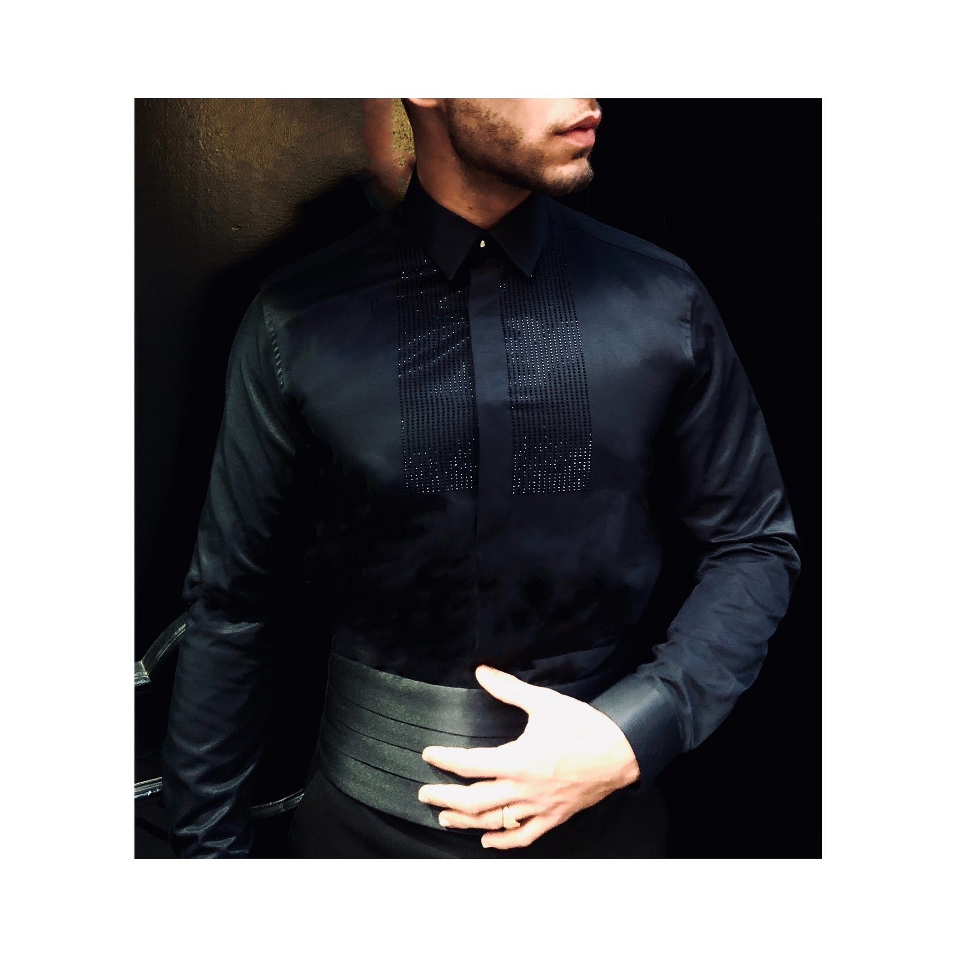 Schwarzes, strassbesetztes Zeremonienhemd 2039