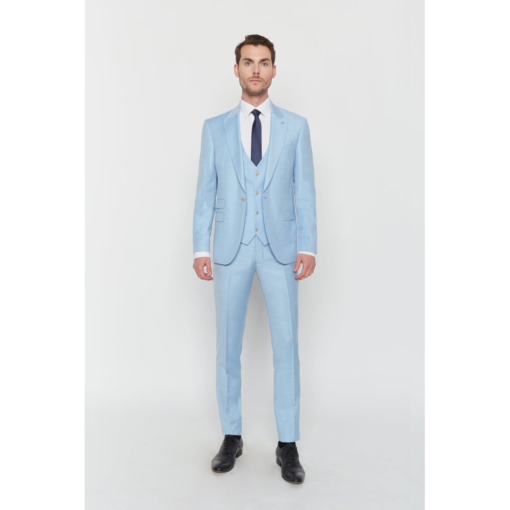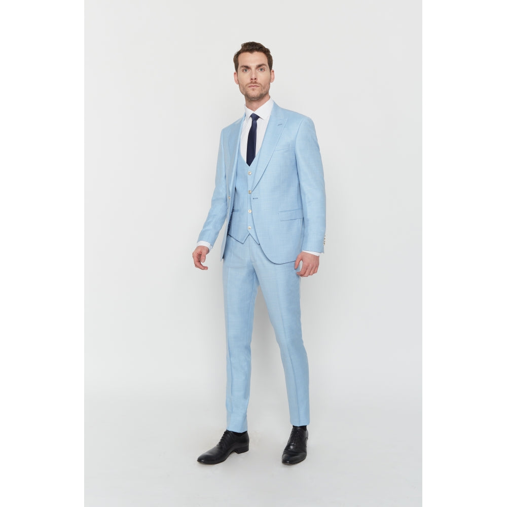 Der Shelby ist ein City-Anzug im Chiné-Look aus Fil a Fil. Die Jacke hat einen Knopf und die passende Weste. Der spitze Kragen verleiht ihr ein formelles Outfit und der Stoff enthält Lycra für extremen Komfort.