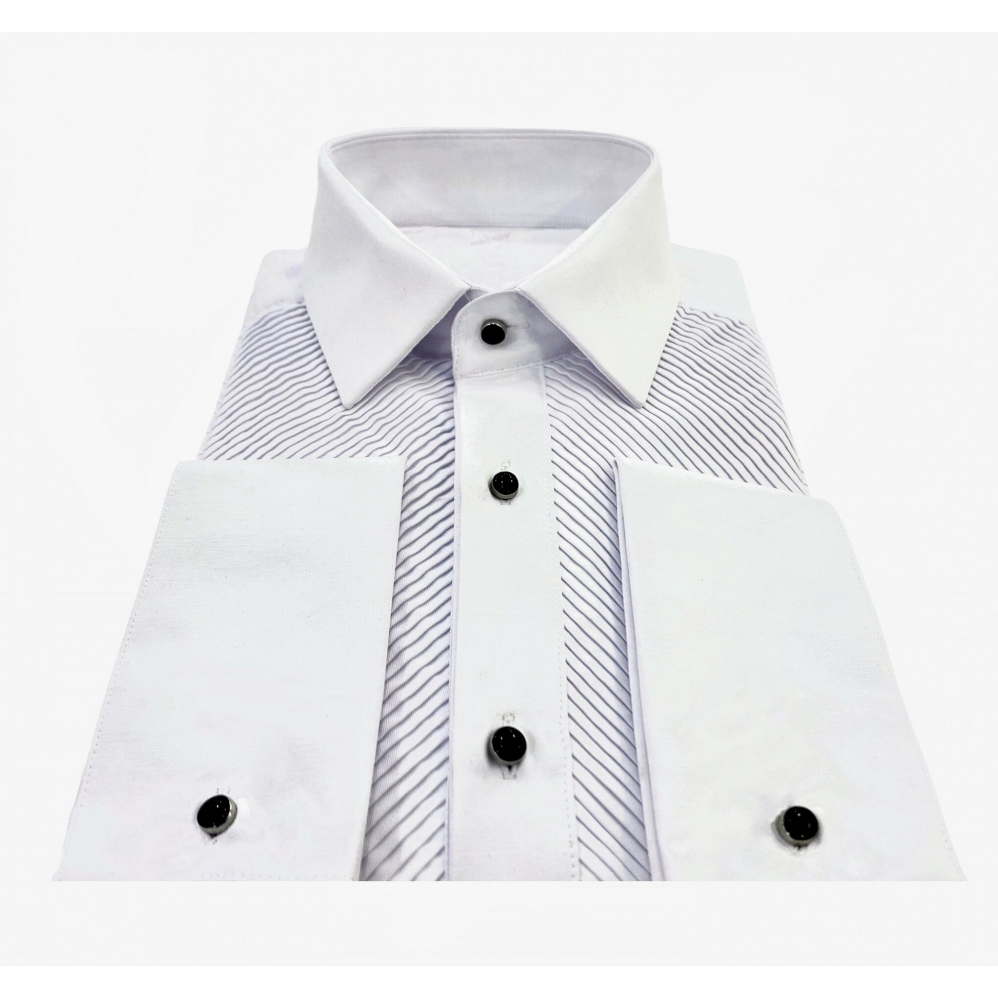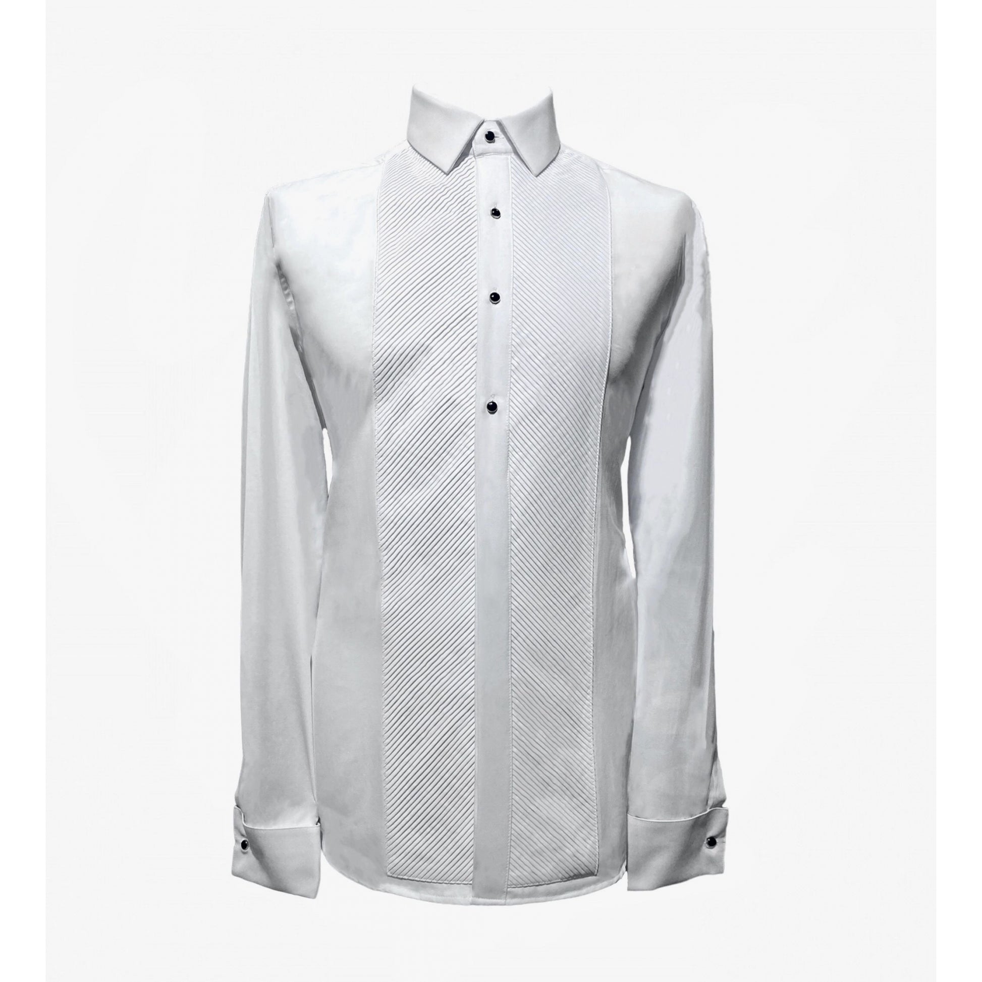 Dieses Hemd aus bügelleichtem Stoff verleiht Ihnen Eleganz und Komfort für alle Ihre besonderen Anlässe. Hemd mit französischem Kragen, plissiertem Latz und sichtbaren schwarzen Metallknöpfen. Musketiergriff mit abnehmbarem schwarzem Metallknopf. Ein schickes und perfekt passendes Hemd aus weichem Kaschmir. Sorgt für ein wohles Gefühl bei jedem Event.  ⦁ Passend zu jedem Anzug ⦁ Elegant und weich ⦁ Aus weichem Kaschmir