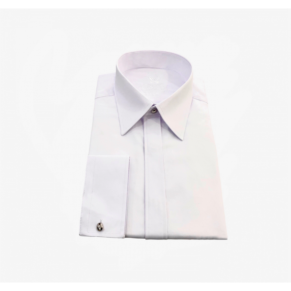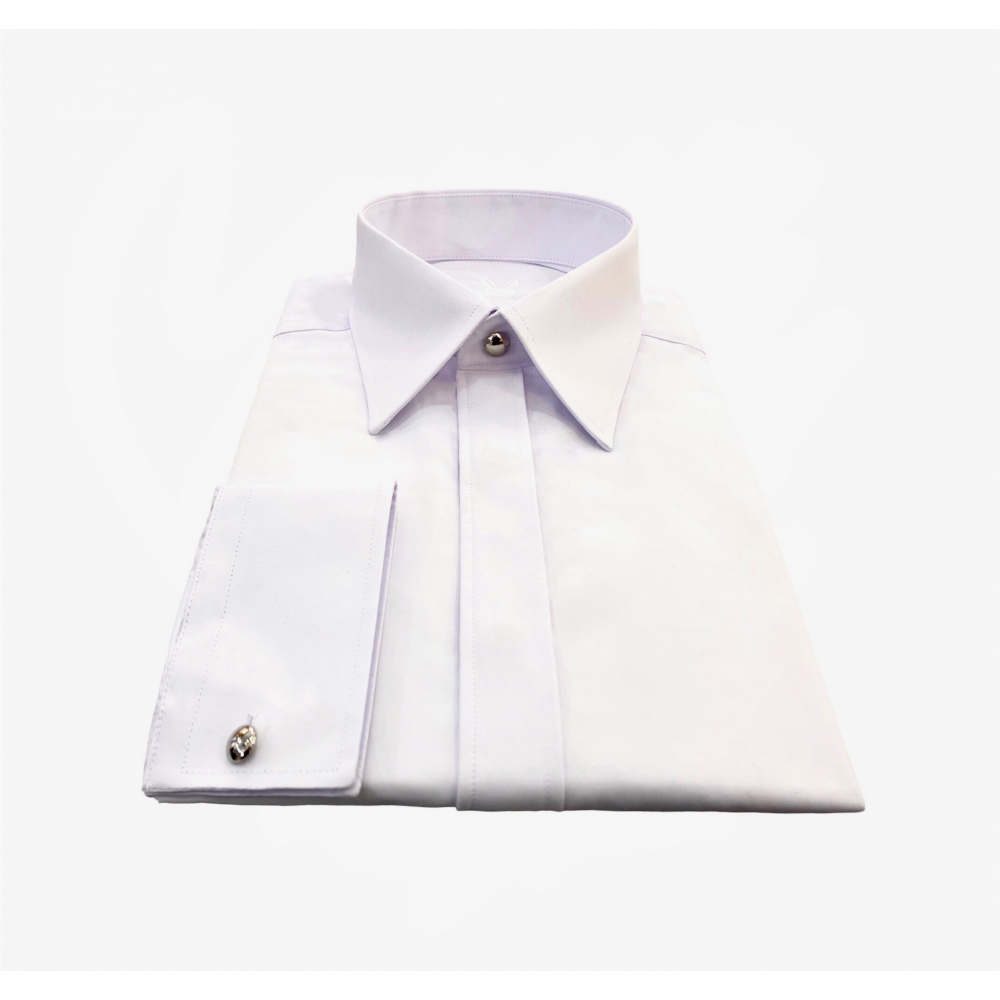 Weißes Hemd mit englischem Kragen und 619 Metallknöpfen