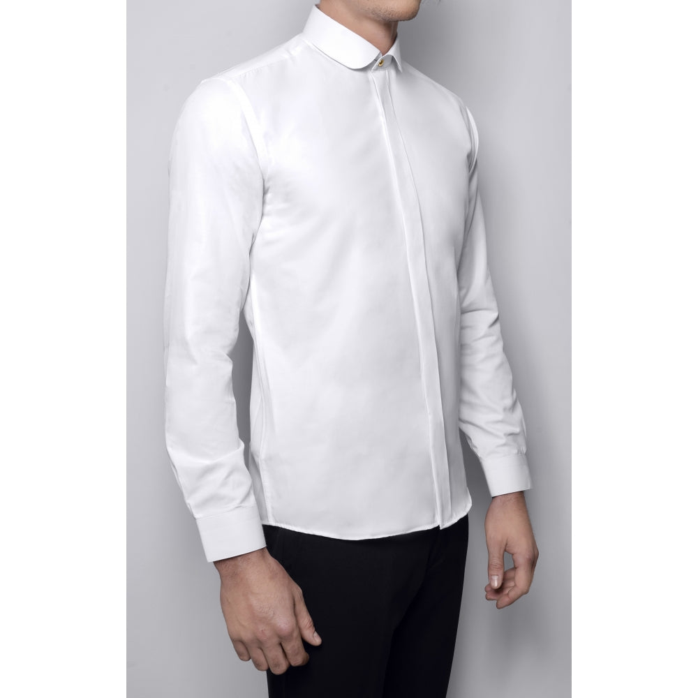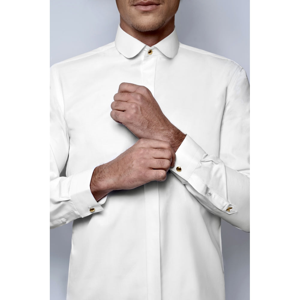 Dieses Hemd aus bügelleichtem Stoff sorgt für Komfort im Alltag. Der runde Kragen und der goldfarbene Metallknopf verleihen Ihnen einen aktuellen und dynamischen Look. Das Handgelenk ist gemischt (Manschettenknopf möglich).