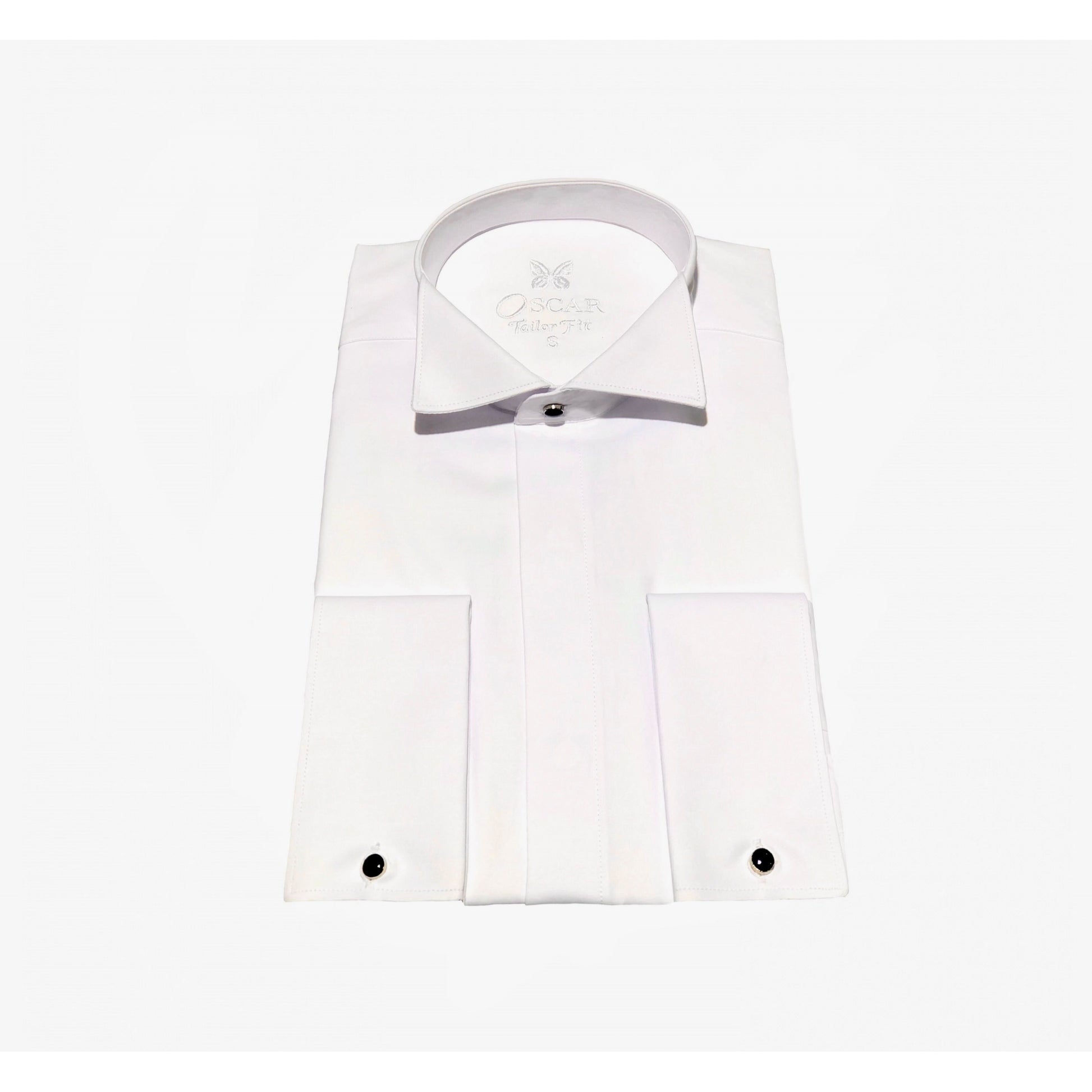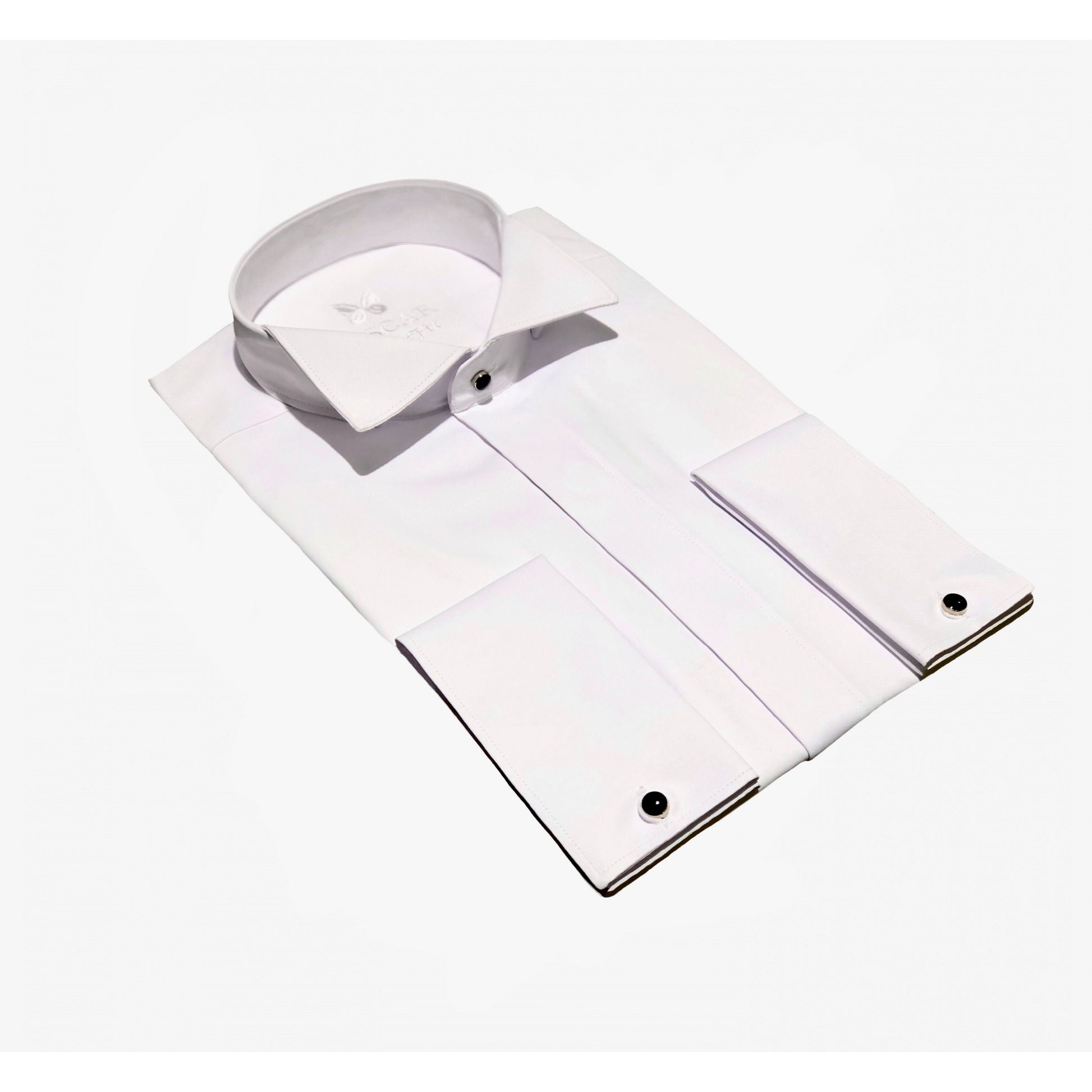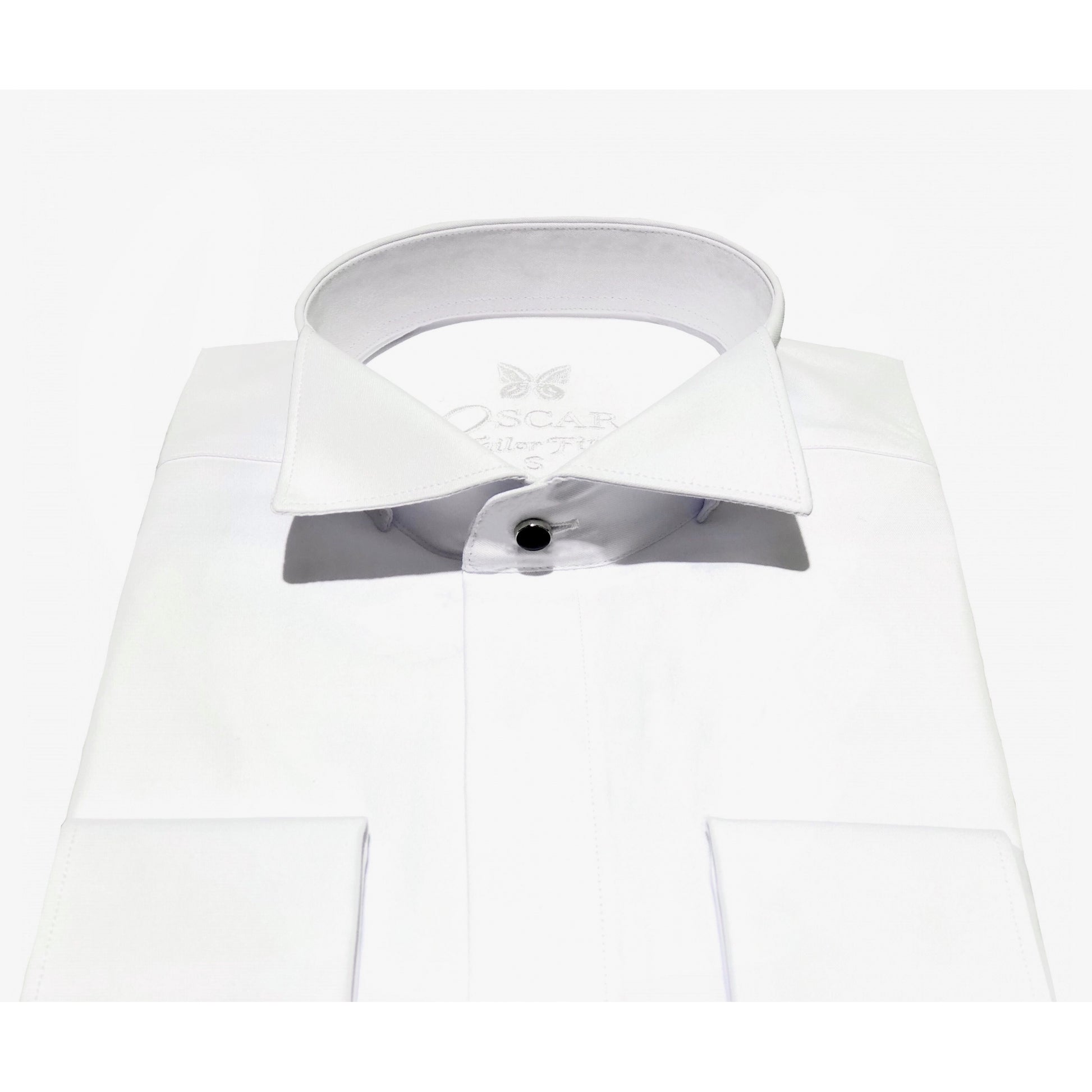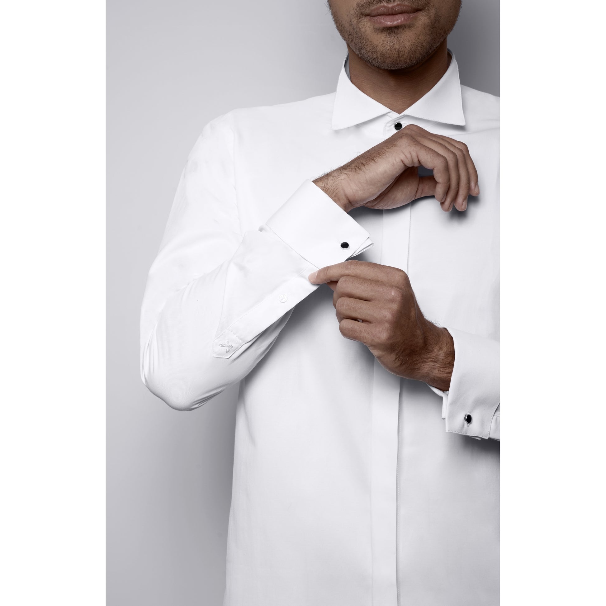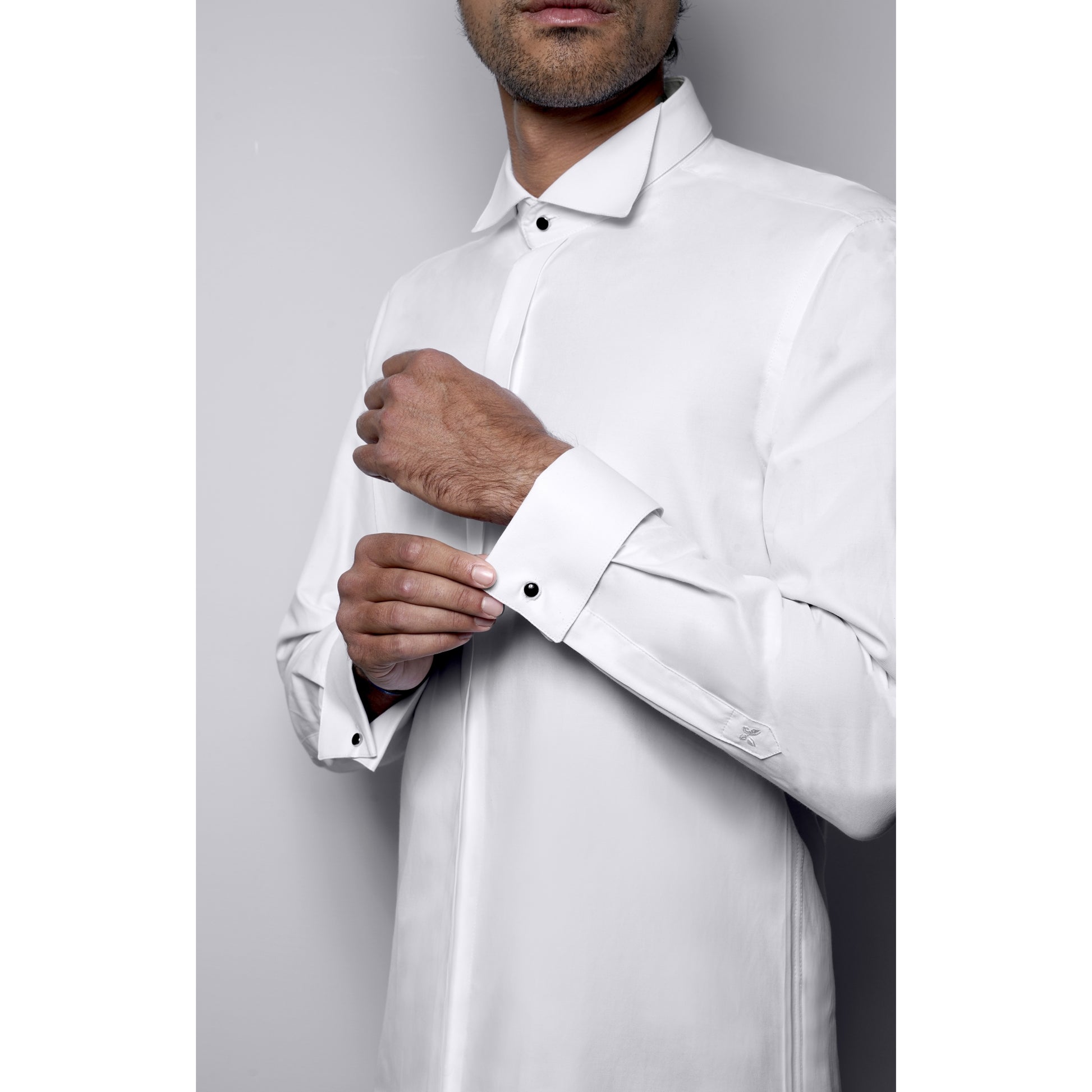 Dieses Hemd aus bügelleichtem Stoff verleiht Ihnen Eleganz und Komfort für alle Ihre besonderen Anlässe. Hemd mit gebrochenem Kragen und versteckter Lasche für die Fliege + Musketiermanschette. ⦁ Passend zu jedem Anzug ⦁ Elegant und weich ⦁ Aus weichem Kaschmir