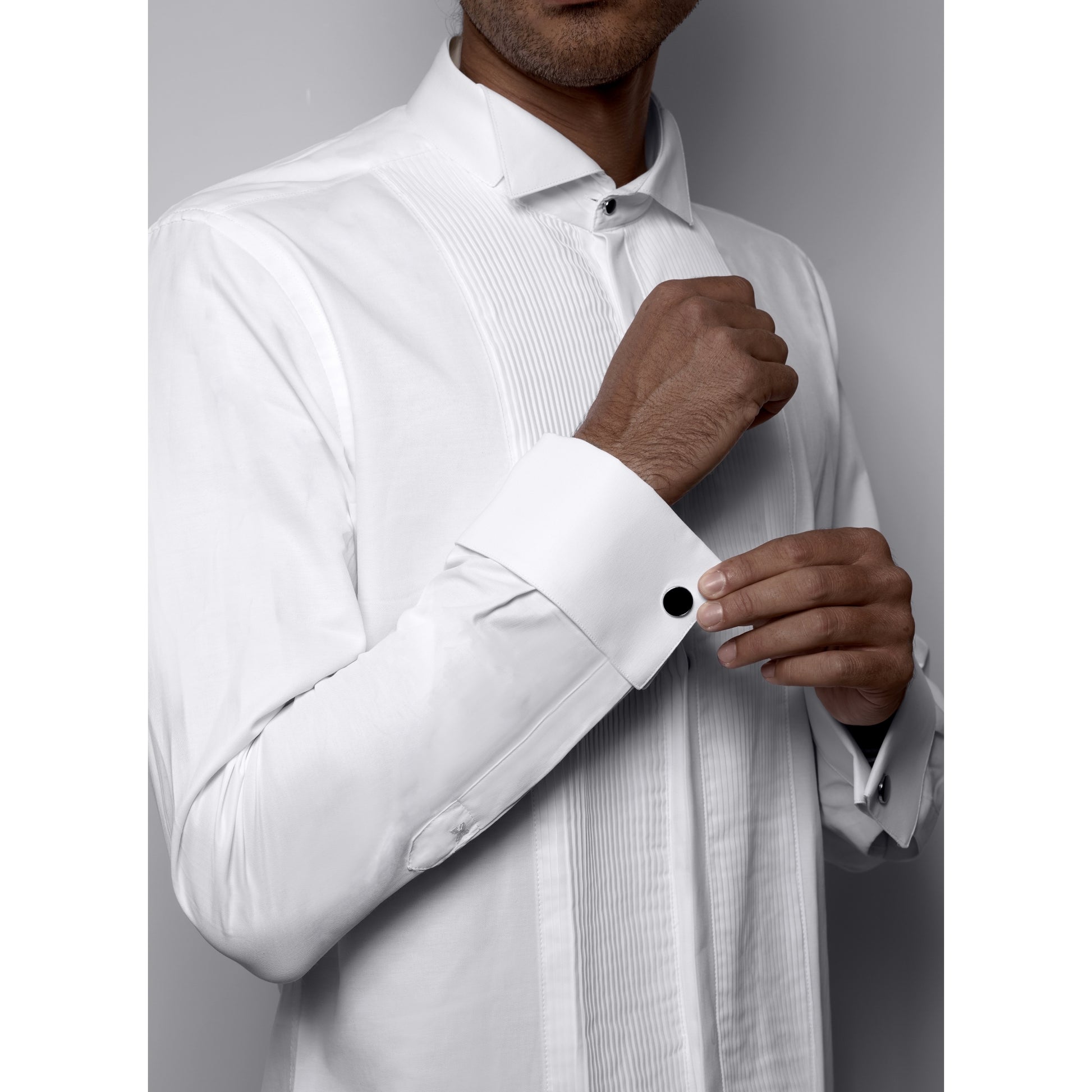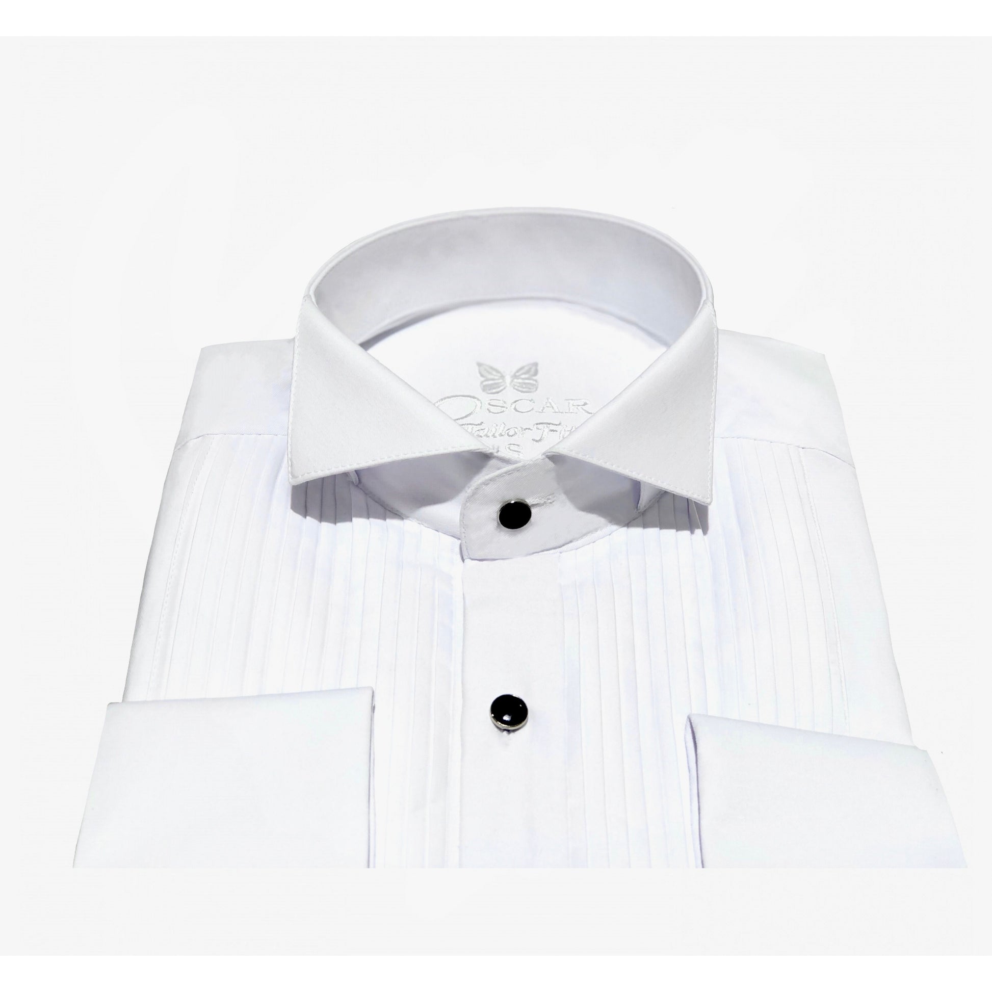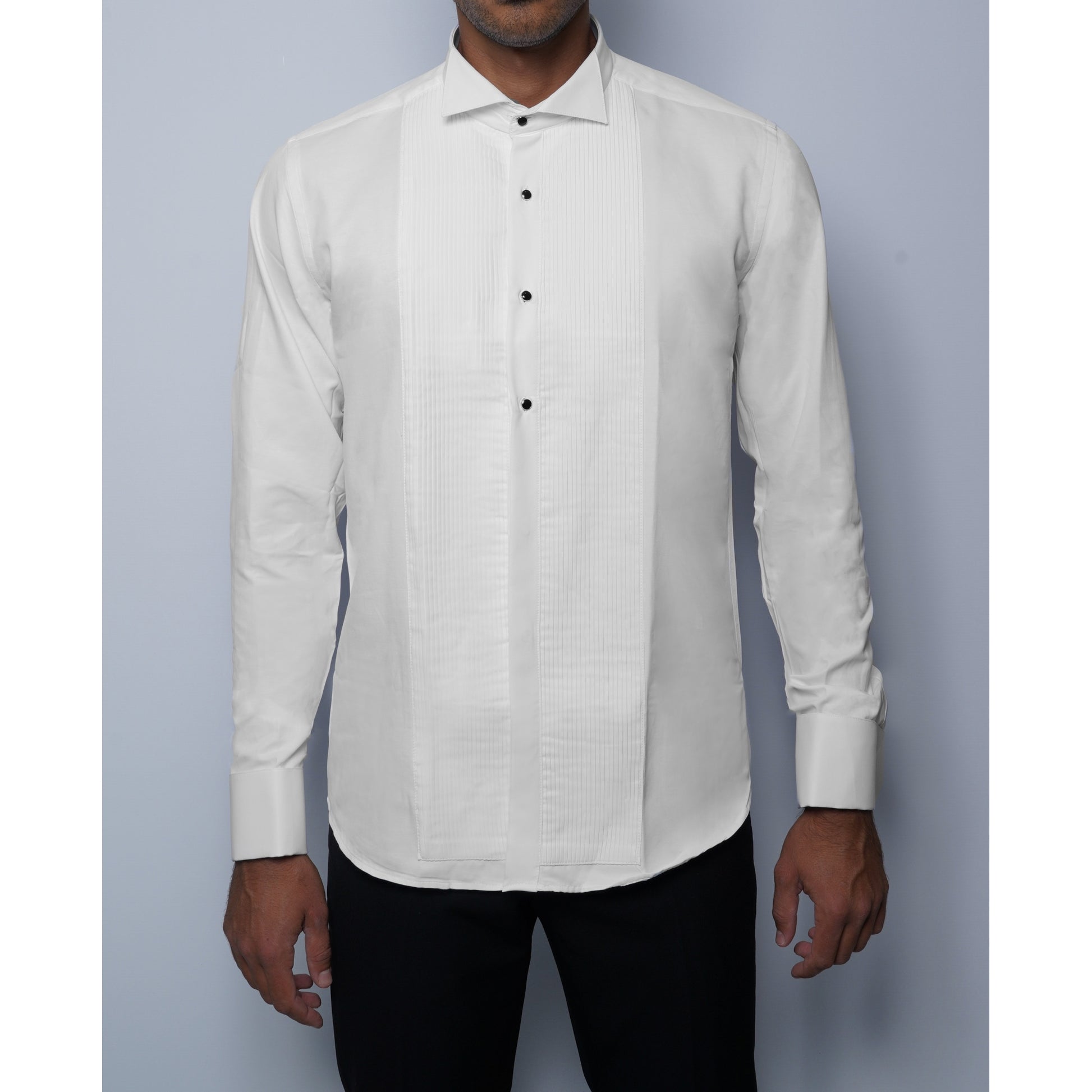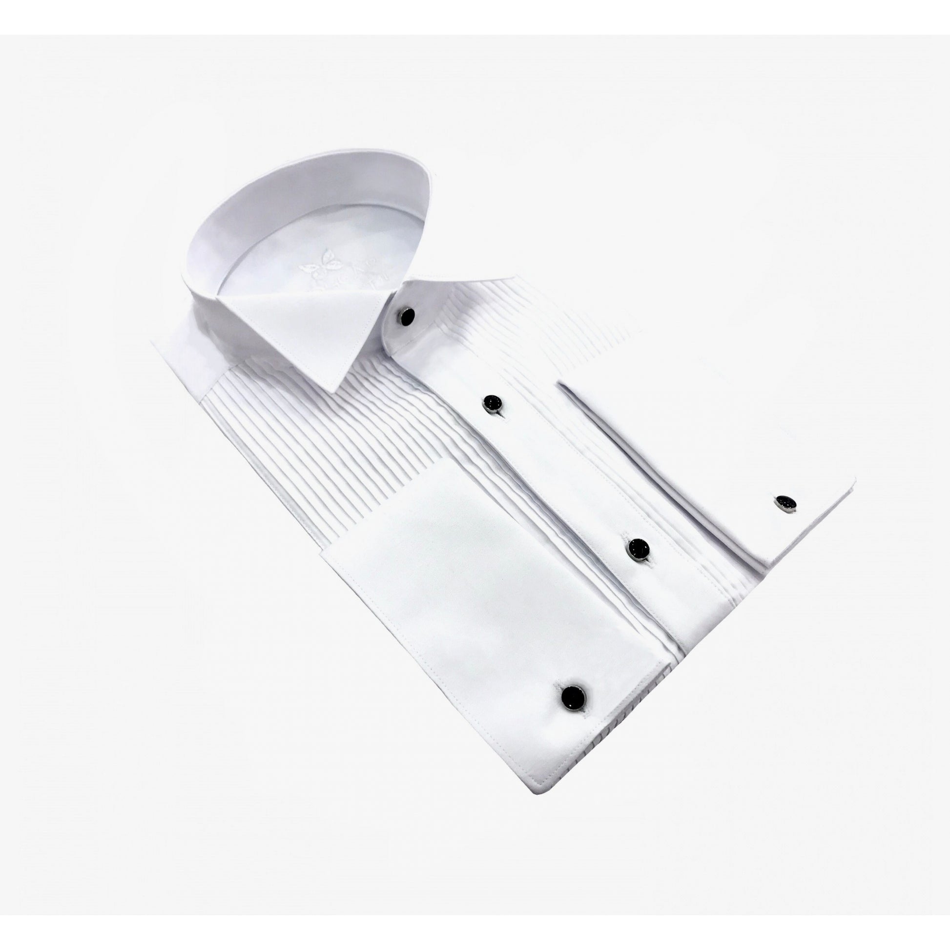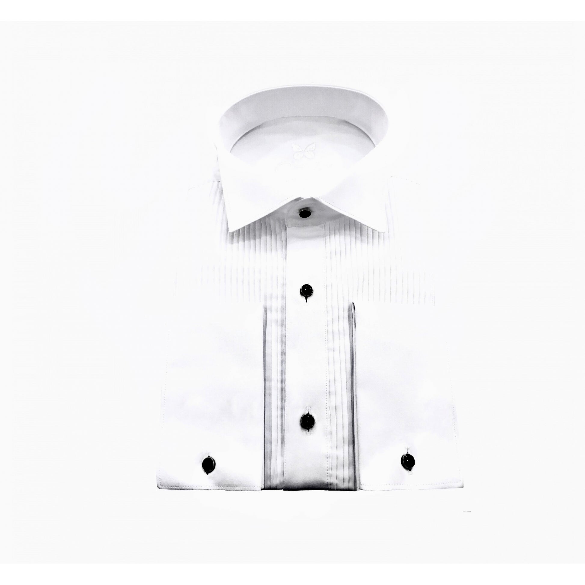 Dieses Hemd aus bügelleichtem Stoff verleiht Ihnen Eleganz und Komfort für alle Ihre besonderen Anlässe. Hemd mit gebrochenem Kragen und versteckter Lasche für Fliege. Plissee-Latz und Knopfverschluss mit sichtbarem schwarzem Metallknopf. Musketiergriff mit abnehmbarem schwarzem Metallknopf. ⦁ Passend zu jedem Anzug ⦁ Elegant und weich ⦁ Aus weichem Kaschmir