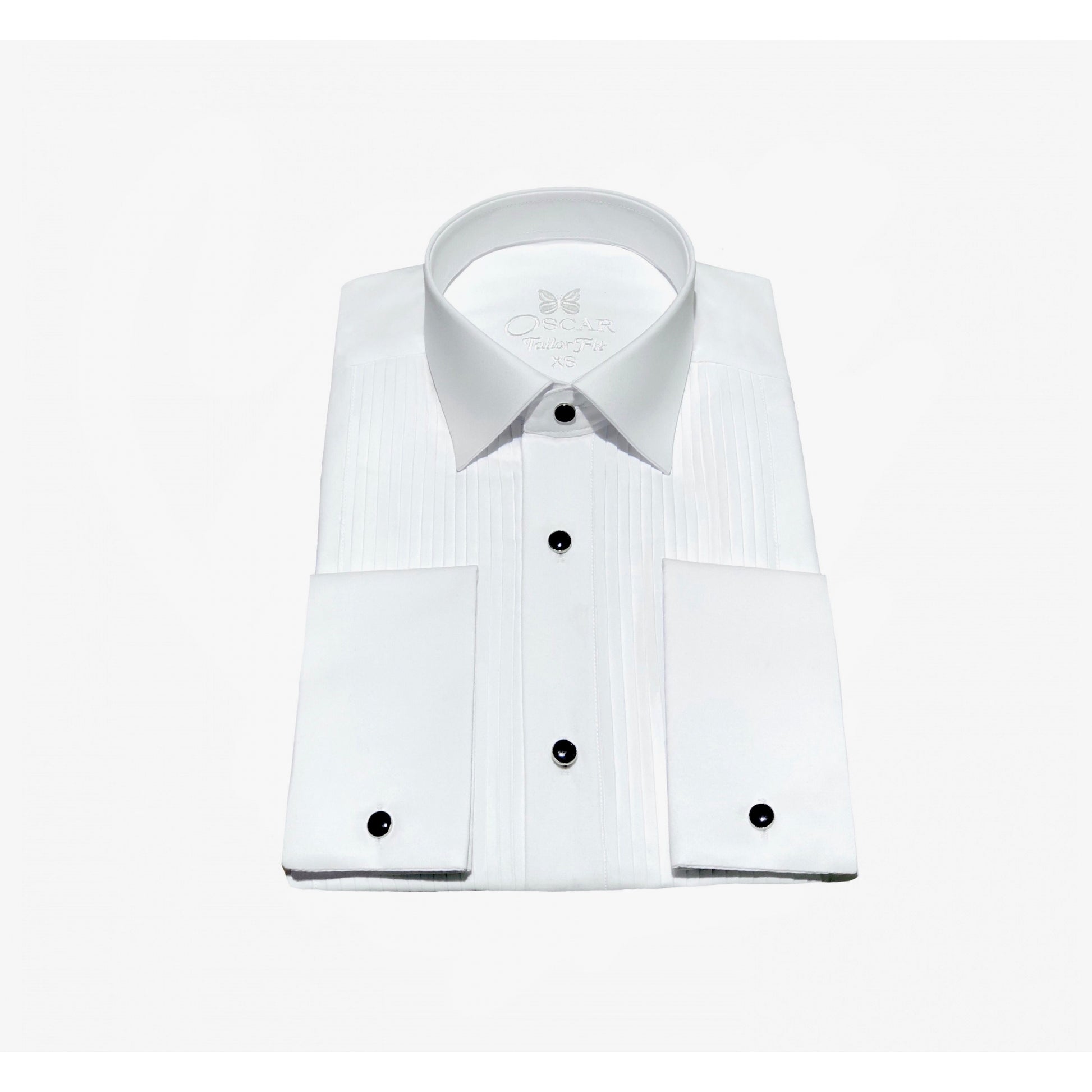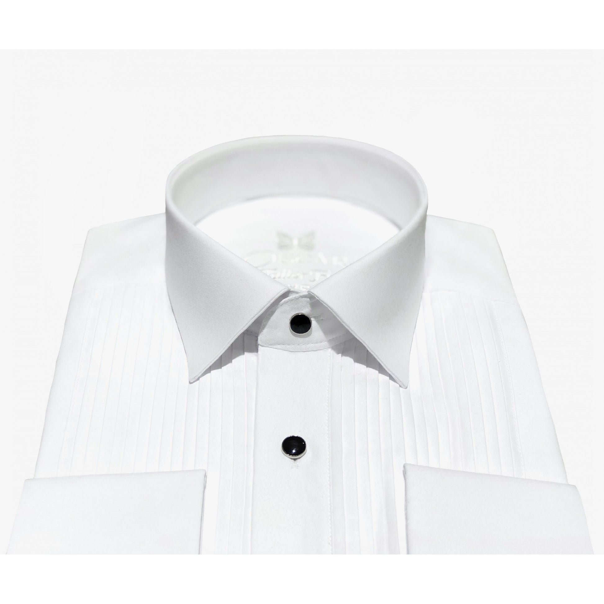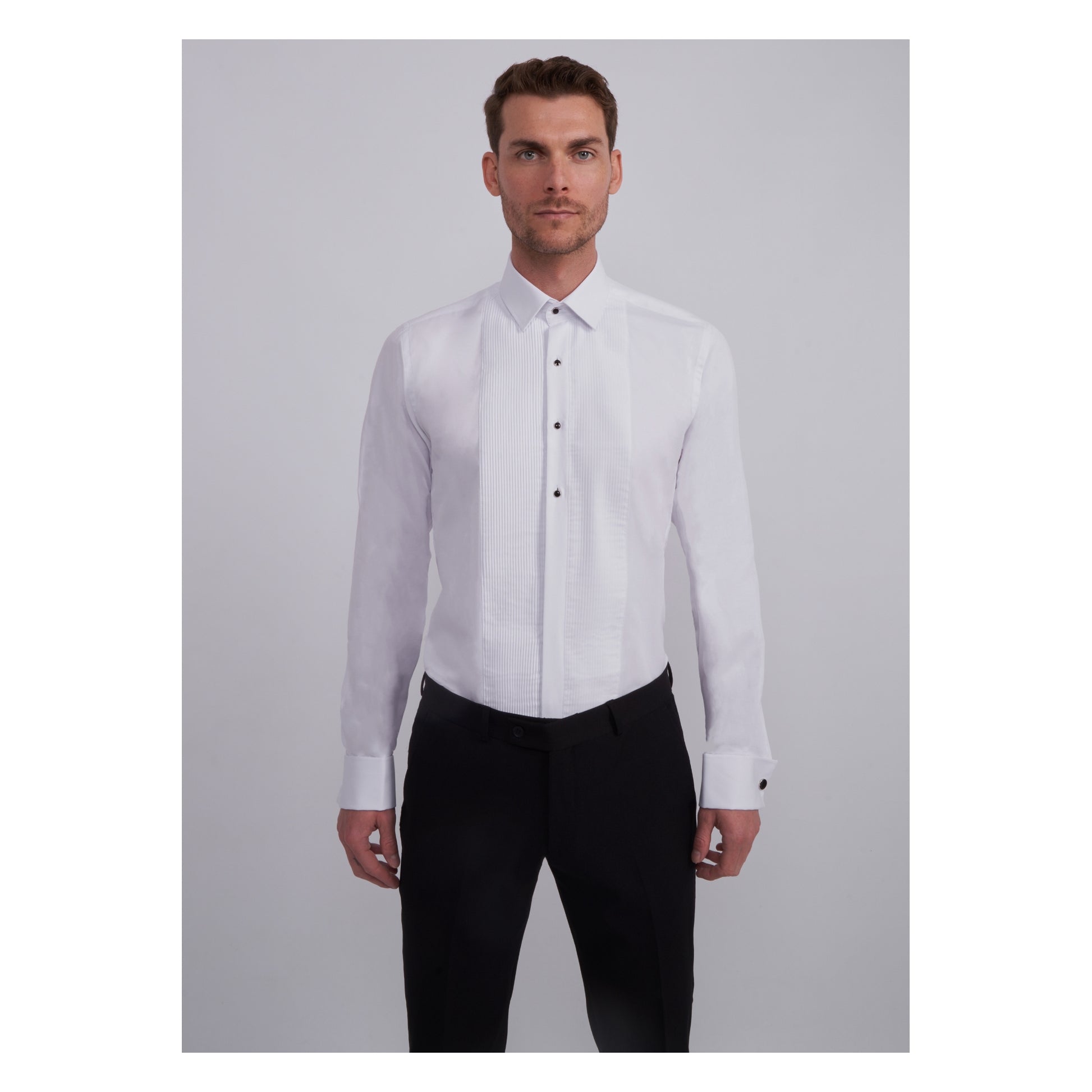 Dieses Hemd aus bügelleichtem Stoff verleiht Ihnen Eleganz und Komfort für alle Ihre besonderen Anlässe. Hemd mit französischem Kragen, plissiertem Latz und sichtbaren schwarzen Metallknöpfen. Musketiergriff mit abnehmbarem schwarzem Metallknopf.             ⦁ Passend zu jedem Anzug ⦁ Elegant und weich ⦁ Aus weichem Kaschmir