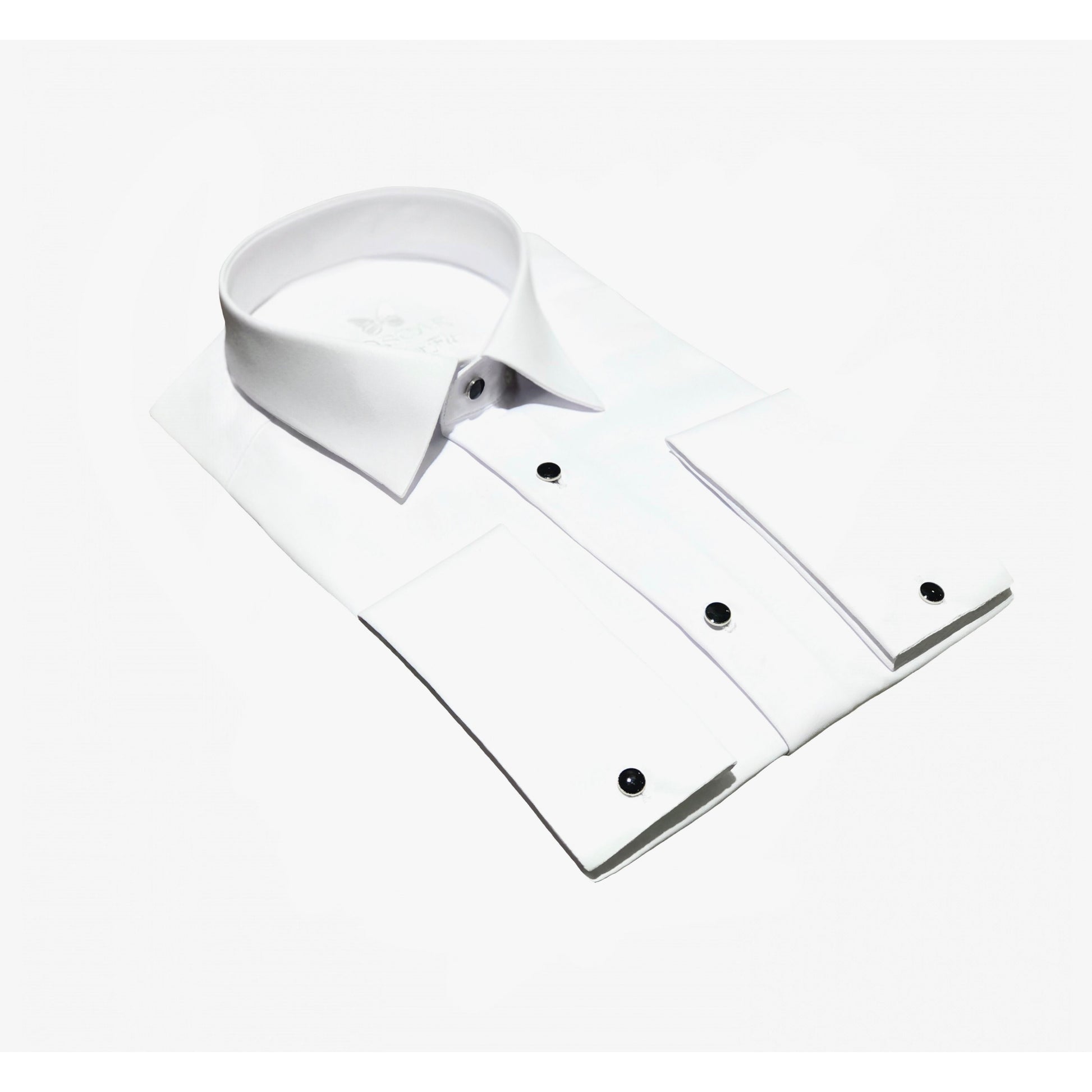 Dieses Hemd aus bügelleichtem Stoff verleiht Ihnen Eleganz und Komfort für alle Ihre besonderen Anlässe. Hemd mit französischem Kragen ohne sichtbare Naht. Knöpfe mit sichtbaren schwarzen Metallknöpfen. Musketiergriff mit abnehmbarem schwarzem Metallknopf. ⦁ Passend zu jedem Anzug ⦁ Elegant und weich ⦁ Aus weichem Kaschmir