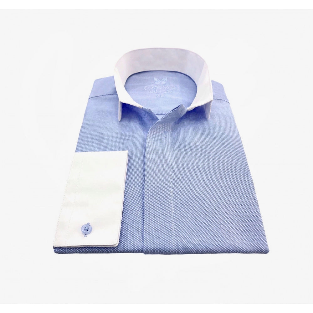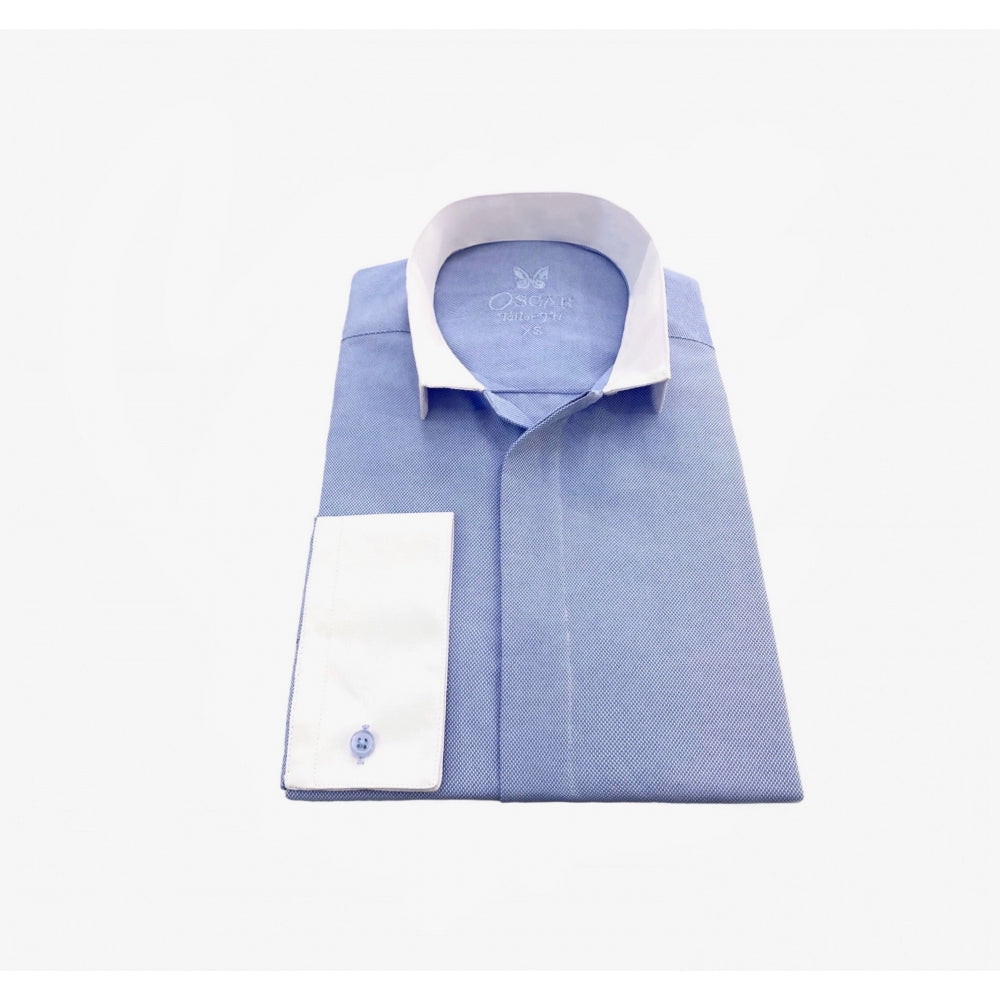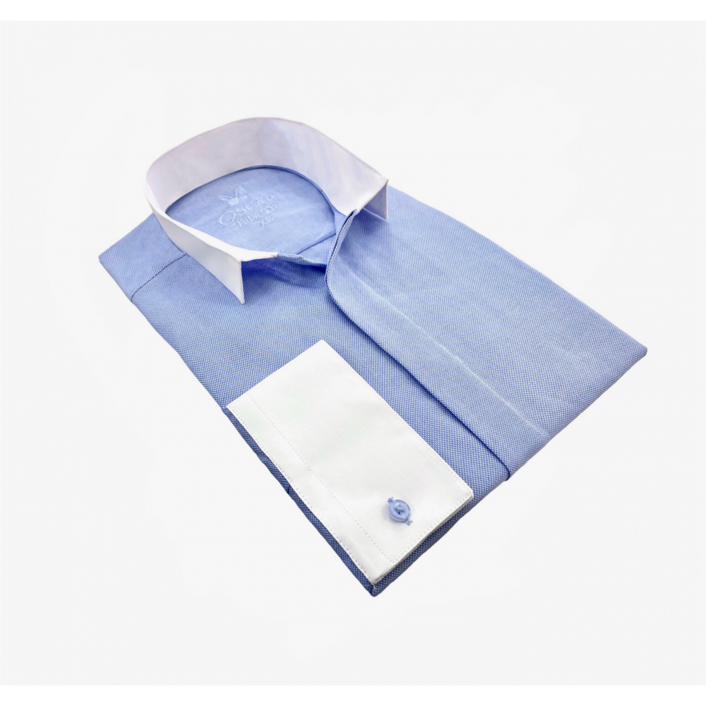 Zweifarbiges Oxford-Blauhemd mit weißem Reverskragen 1950